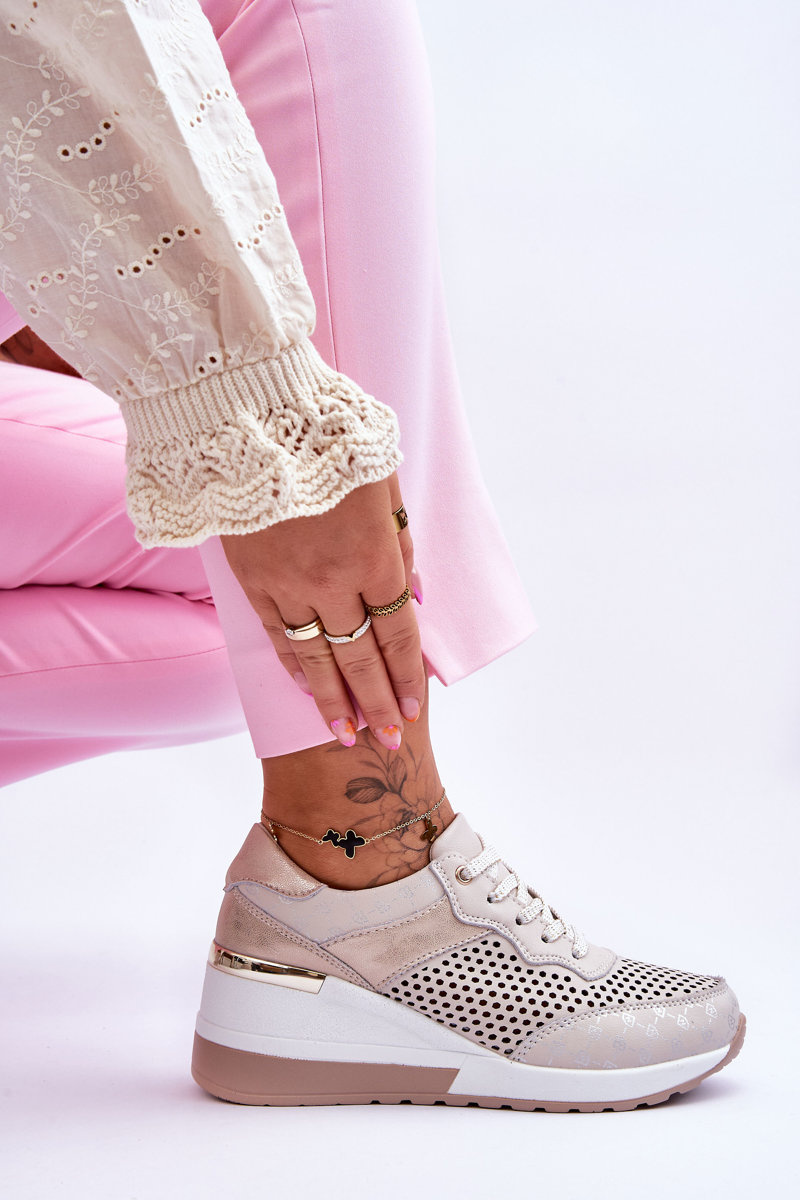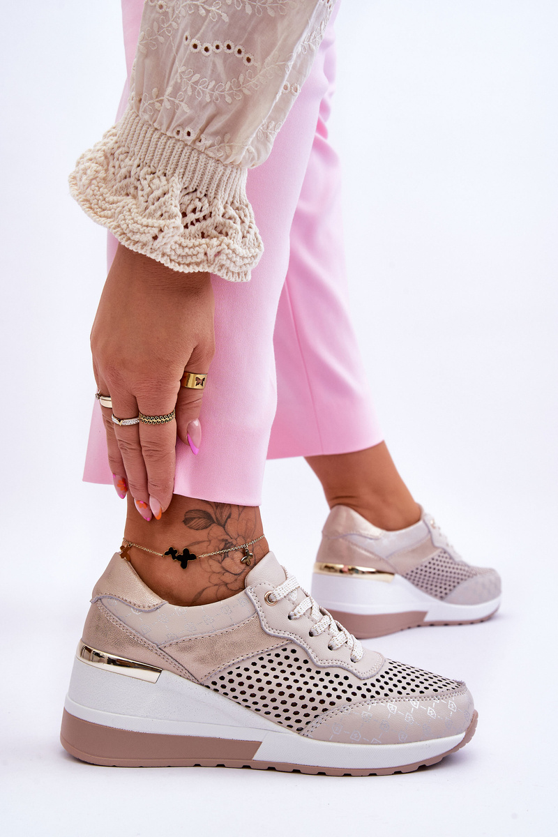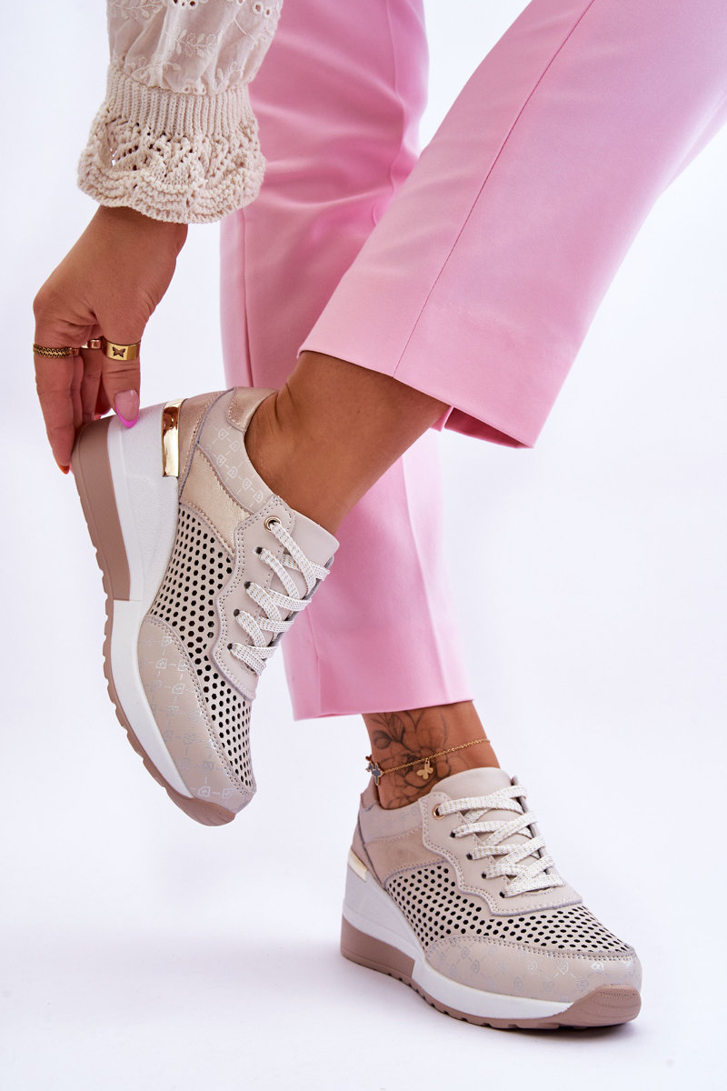 Buty Sportowe Damskie Skóra Ażurowe Jasnobeżowe Virginia
