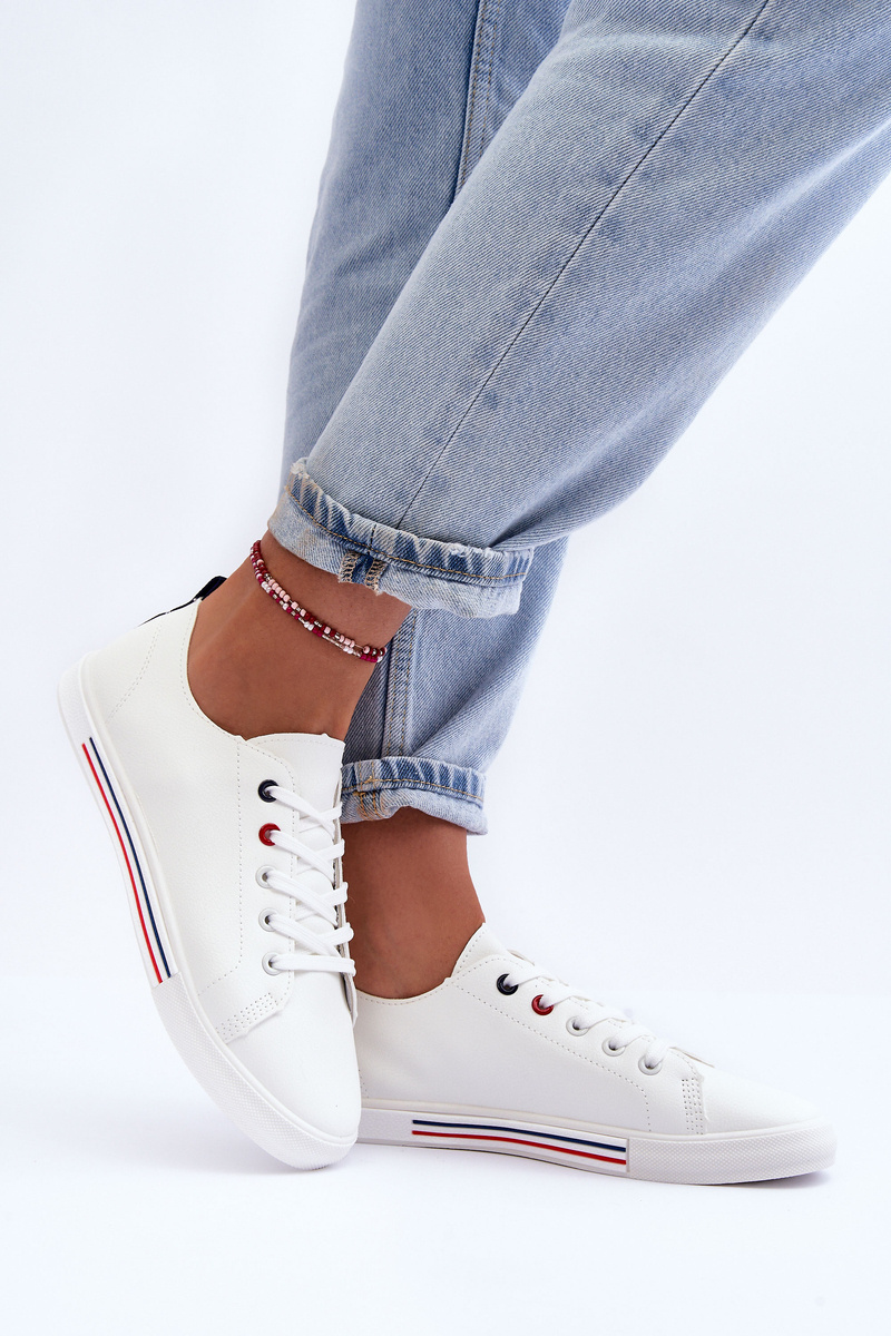 W szafie każdej kobiety powinna znaleźć się para wygodnych butów sportowych. Buty te wyróżniają się wygodą w użytkowaniu oraz wysoką jakością wykonania. Płaska podeszwa na delikatnej platformie świetnie izoluje od podłoża. Wykorzystasz je w wielu sytuacjach – podczas joggingu, spaceru czy spotkania ze znajomymi. Buty wykonane z eko skóry. Miękka wkładka zapewni komfortowe użytkowanie obuwia. Model ten jest klasycznie sznurowany. Noski zaokrąglone.