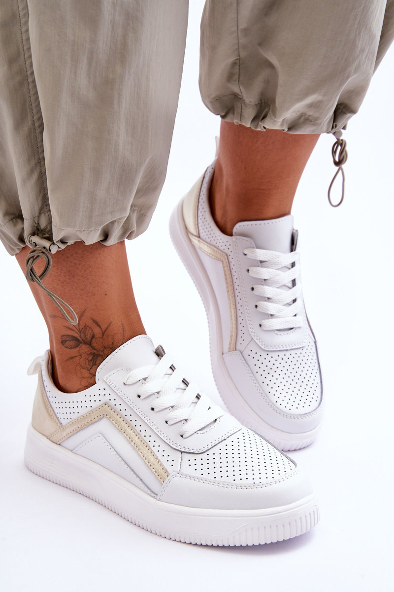 Buty Sportowe Damskie Skóra Perforacja Biało-Złote Carvalo
