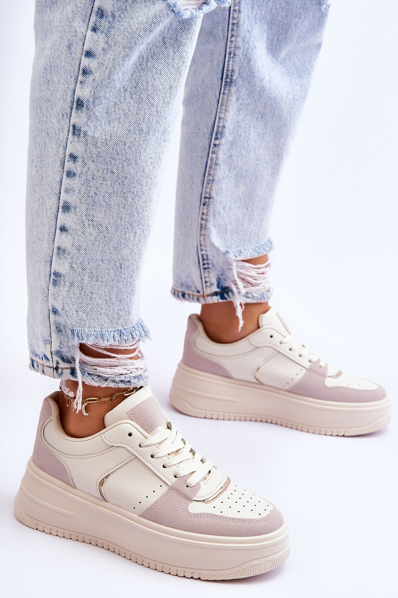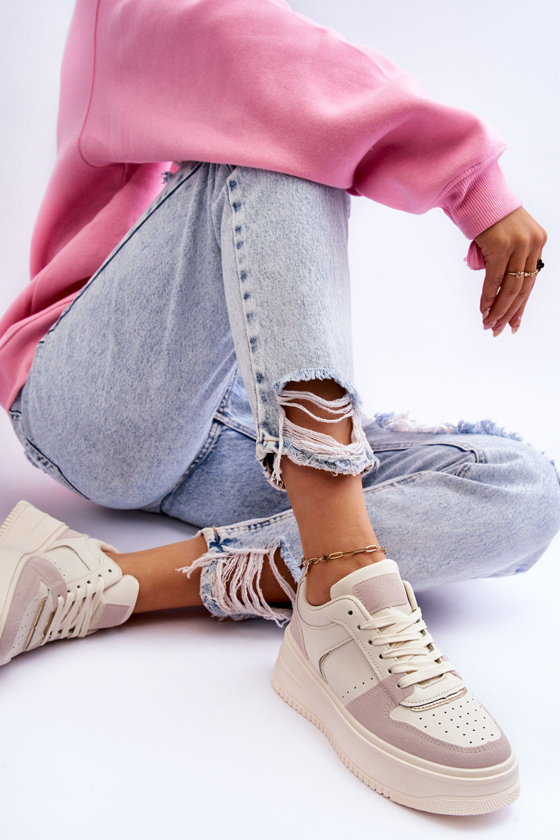 Buty Sportowe Damskie Wysokia Platforma Jasnobeżowe Bexley