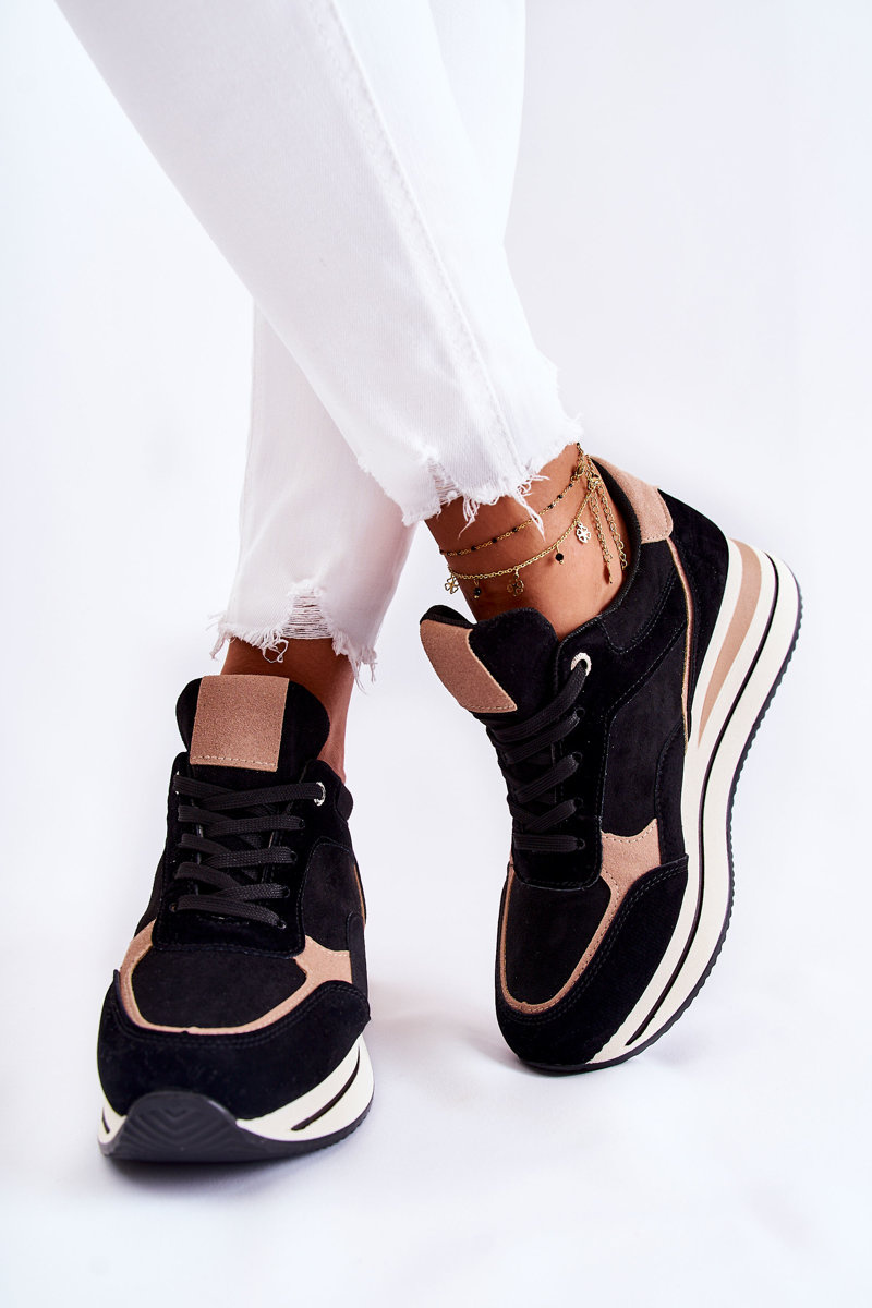 Buty Sportowe Damskie Zamsz Czarno-Beżowe Elisse