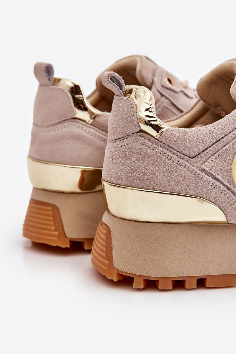 Buty Sportowe Damskie Zamsz Platforma Beżowe GOE LL2N4001