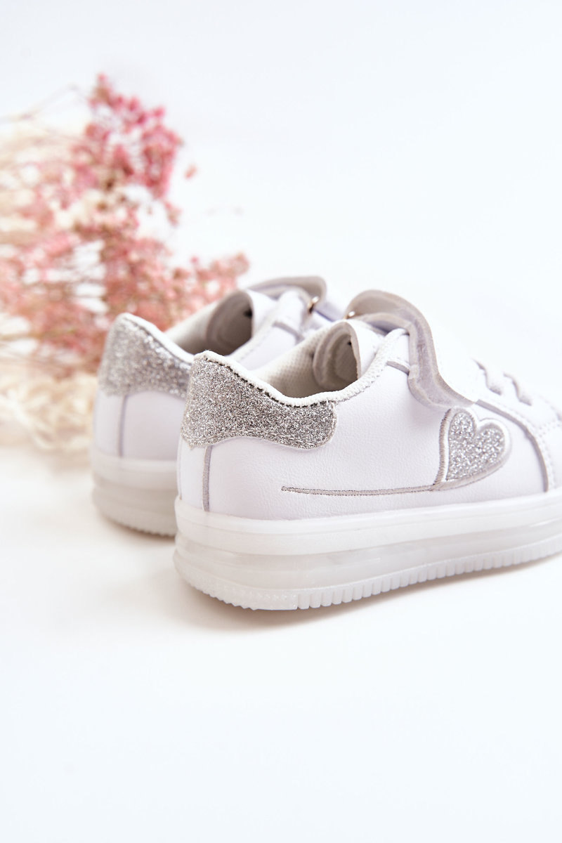Dziecięce buty sportowe zostały wykonane z solidnych materiałów, dzięki którym są bardzo trwałe. Lekkie i wygodne – to niektóre z cech wyróżniających te obuwie. Stabilna podeszwa gwarantuje komfort noszenia przez cały dzień! Wykonane z eko skóry. Posiadają klasyczne zapinanie na rzep oraz gumki imitujące sznurówki. Wkładka profilowana, wykonana z naturalnej skóry. Z boku cholewki widnieje wyszyte serduszko.