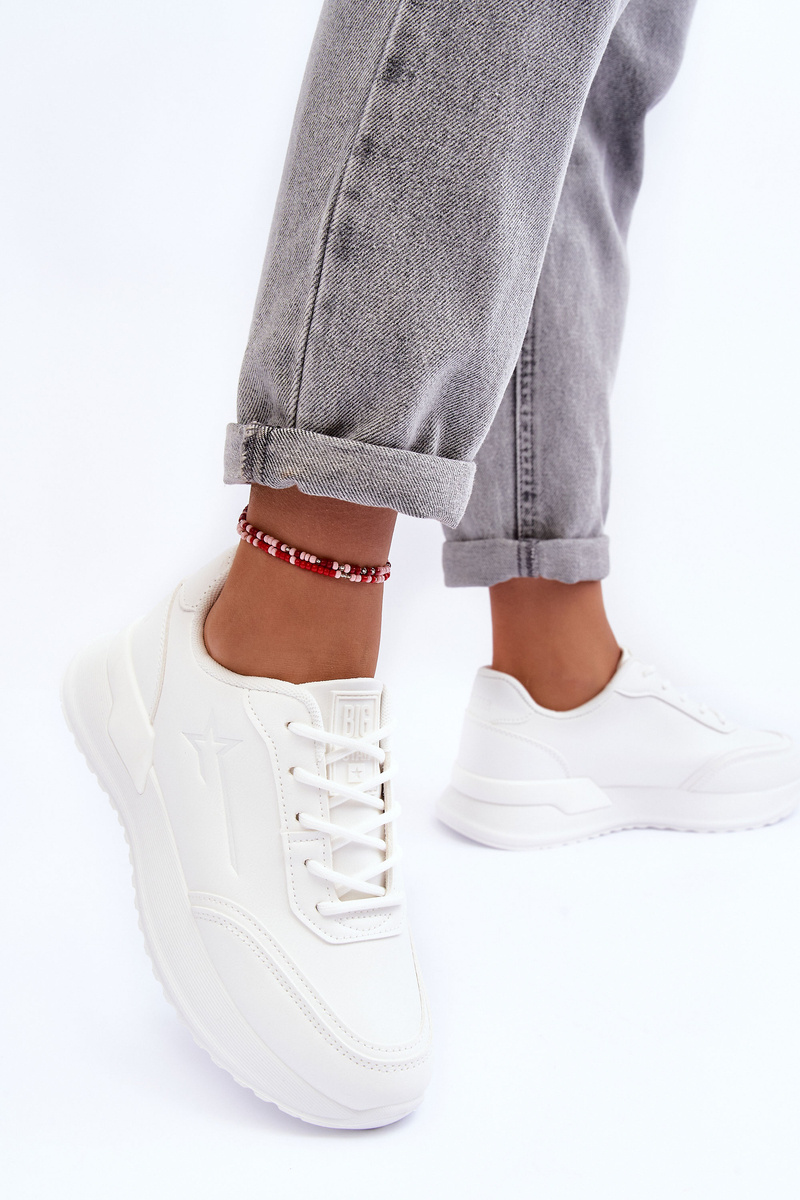 W szafie każdej kobiety powinna znaleźć się para wygodnych butów sportowych. Buty te wyróżniają się wygodą w użytkowaniu oraz wysoką jakością wykonania. Płaska podeszwa na delikatnej platformie świetnie izoluje od podłoża. Wykorzystasz je w wielu sytuacjach – podczas joggingu, spaceru czy spotkania ze znajomymi. Model wykonany z nieprzemakalnych materiałów. Gumowa podeszwa zapewni doskonałą amortyzację. Noski zaokrąglone. Na cholewce logo marki Big Star.