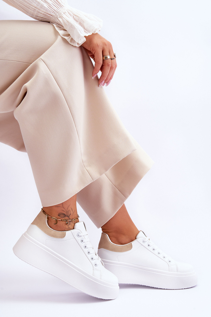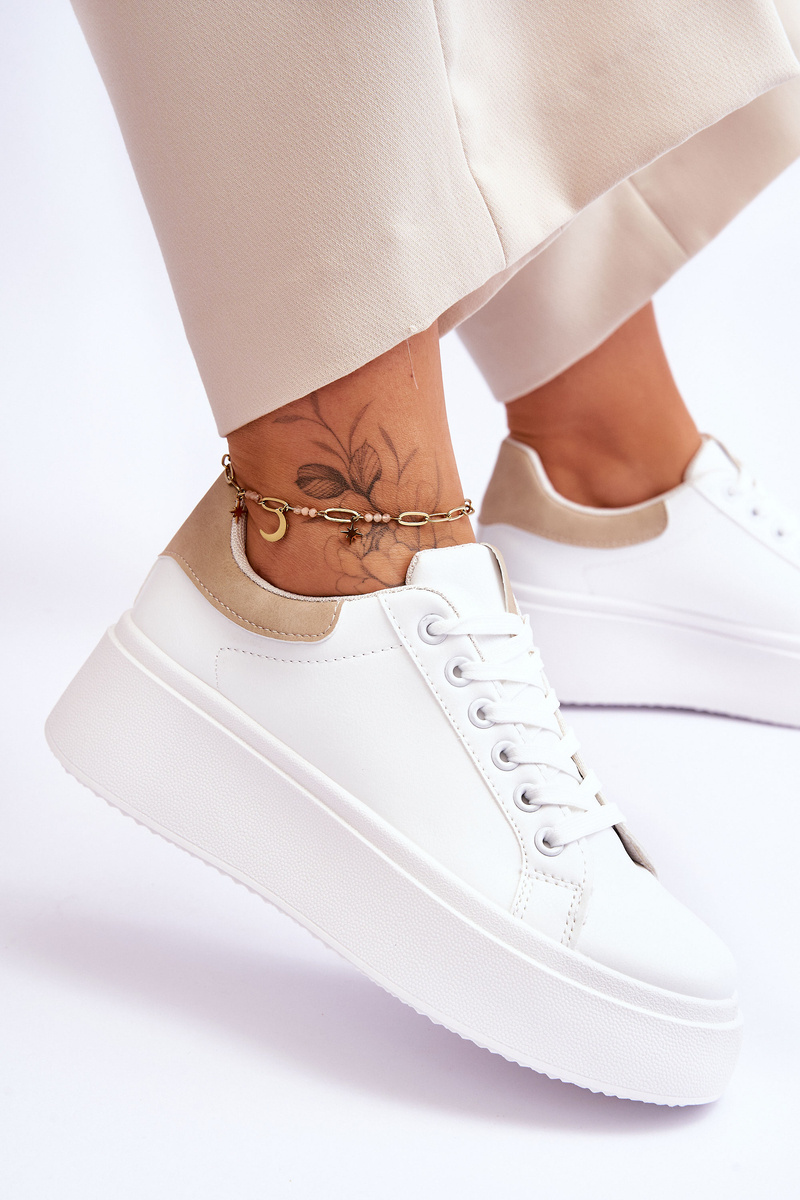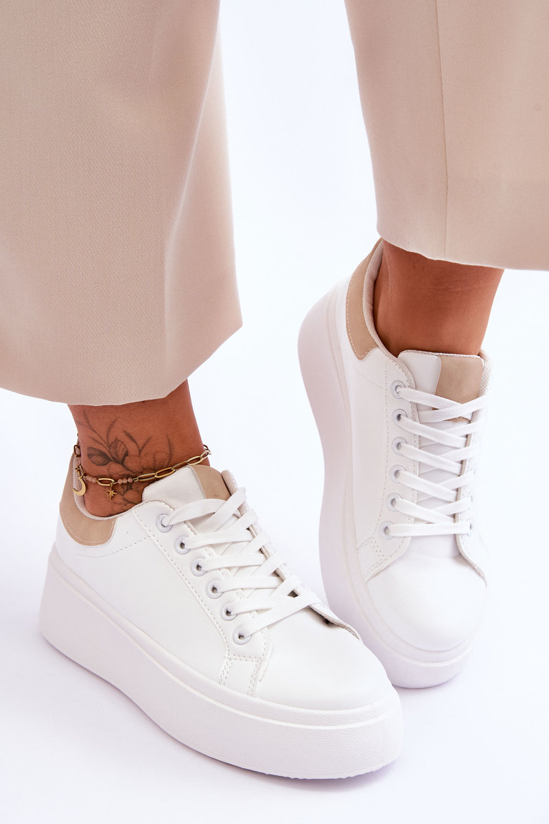 Buty Sportowe Masywna Platforma Biało-Beżowe Boneti