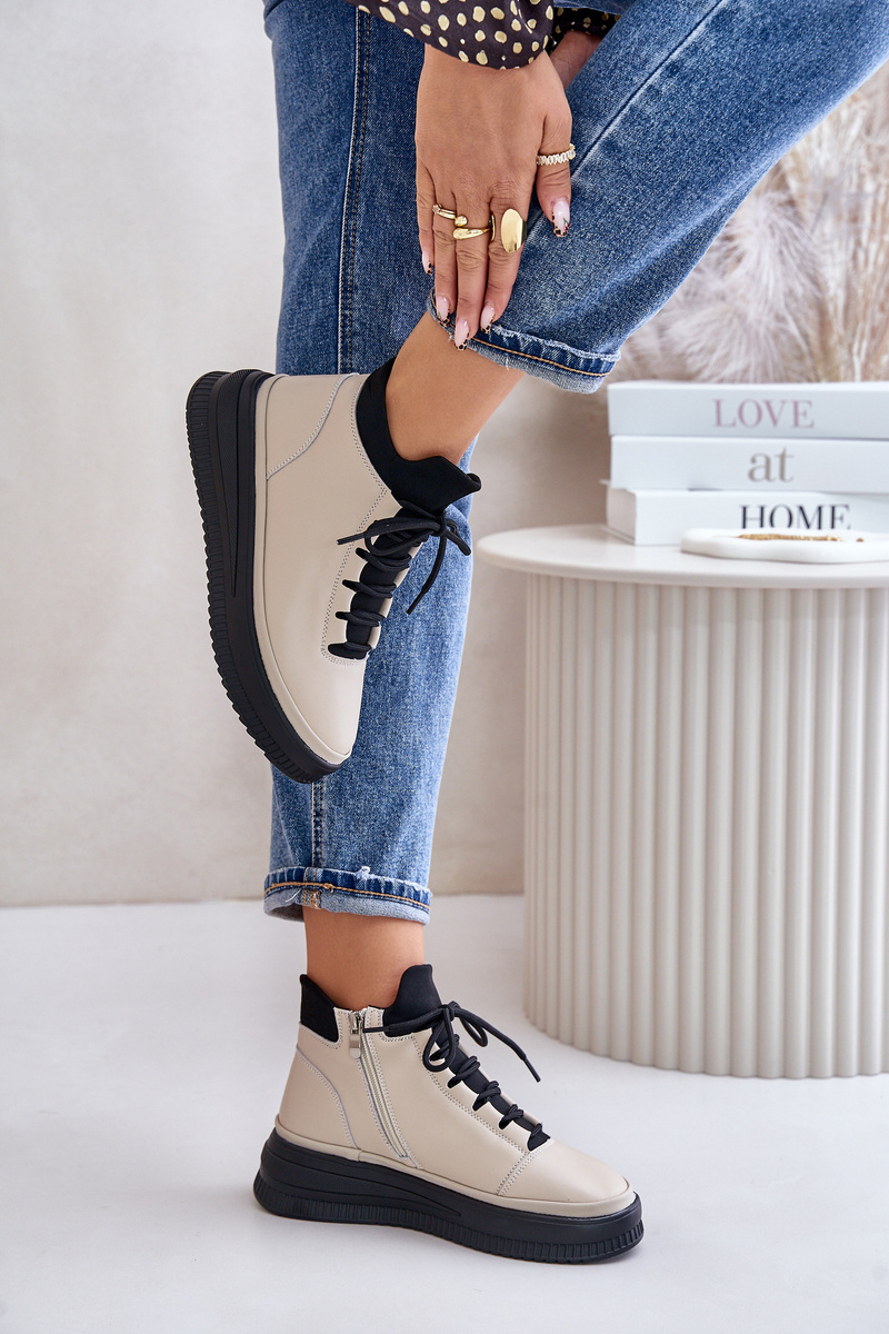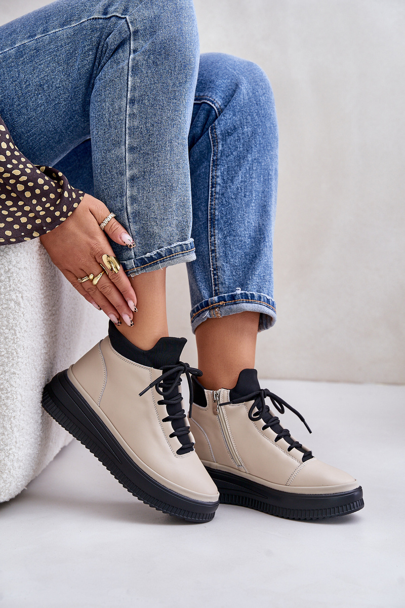 Buty Sportowe Na Platformie Skóra Naturalna Lekkie Beżowe Artiker 55C0554