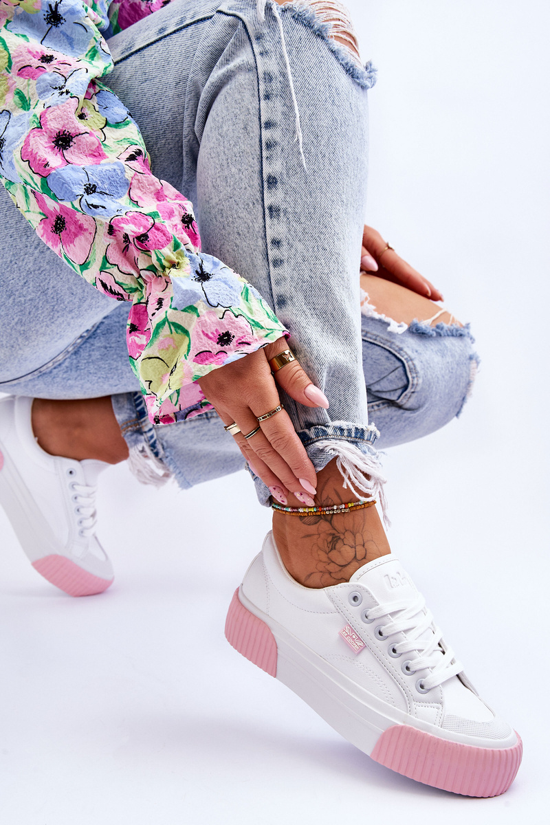 W szafie każdej kobiety powinna znaleźć się para wygodnych butów sportowych. Buty te wyróżniają się wygodą w użytkowaniu oraz wysoką jakością wykonania. Płaska podeszwa na delikatnej platformie świetnie izoluje od podłoża. Wykorzystasz je w wielu sytuacjach – podczas joggingu, spaceru czy spotkania ze znajomymi. Wykonane z wysokiej jakości eko skóry. Buty te posiadają klasyczne sznurowanie oraz logo marki Lee Cooper z boku cholewki. Masywna platforma z gumowymi wzmocnieniami i z antypoślizgową podeszwą. Miękka wkładka oraz usztywniany zapiętek zapewni komfort podczas użytkowania.