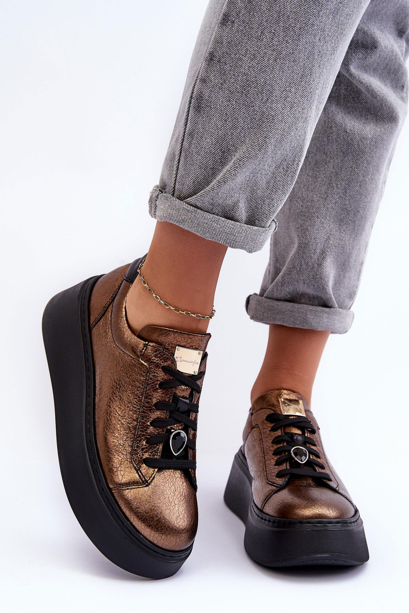 Buty Sportowe Skóra Platforma Maciejka 06191-24 Miedziane