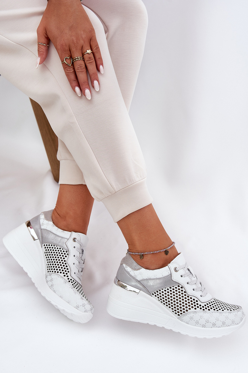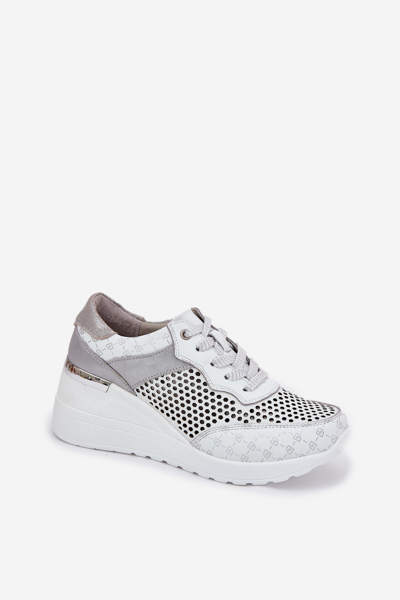 Buty Sportowe Sneakersy Ażurowe Na Koturnie Skóra Naturalna Białe S.Barski LR51-641