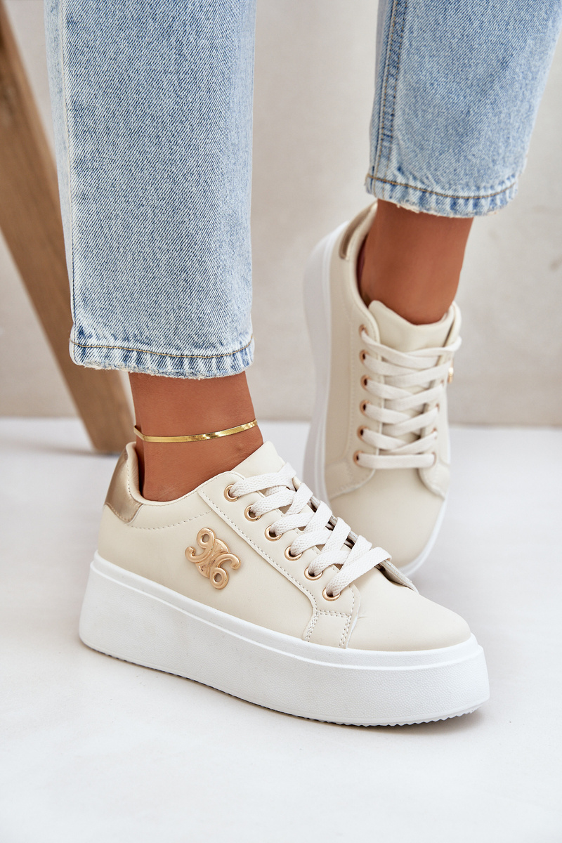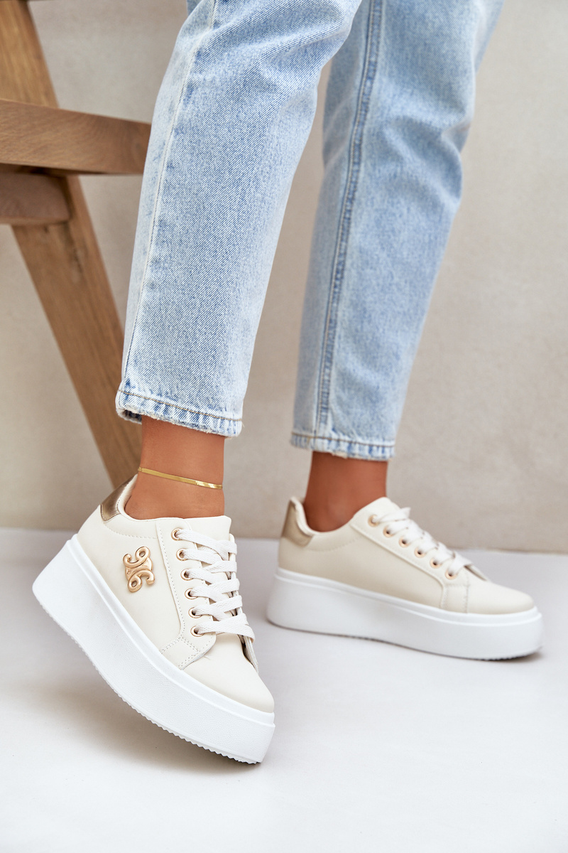 Buty Sportowe Sneakersy Damskie Na Platformie Beżowo-Złote Temittes