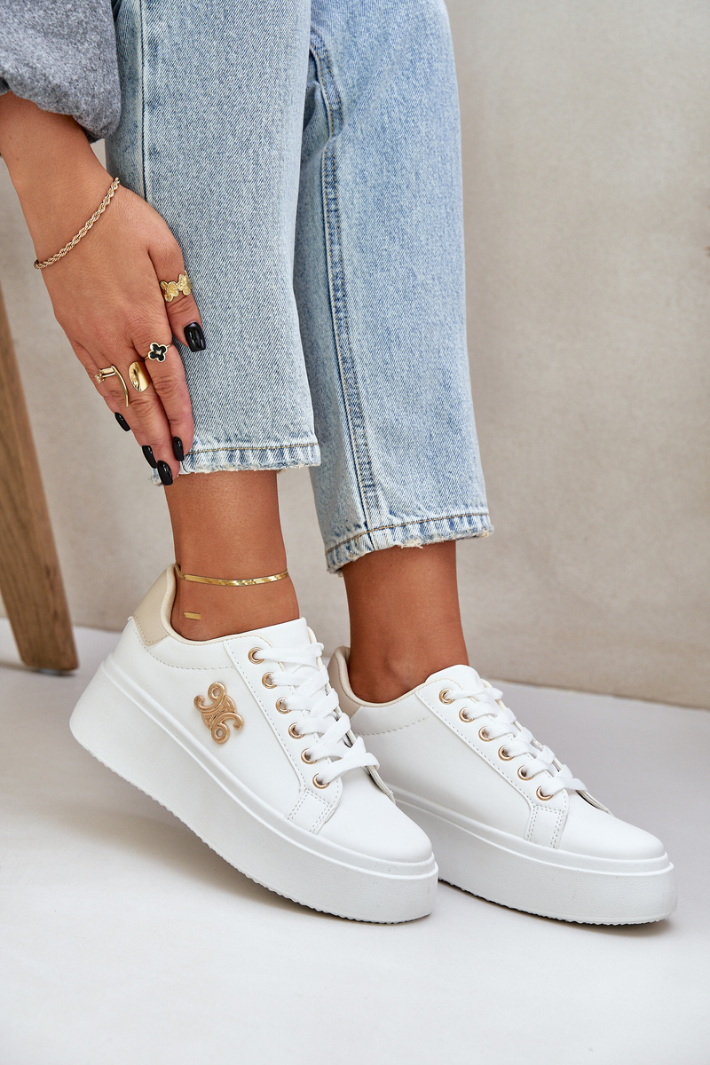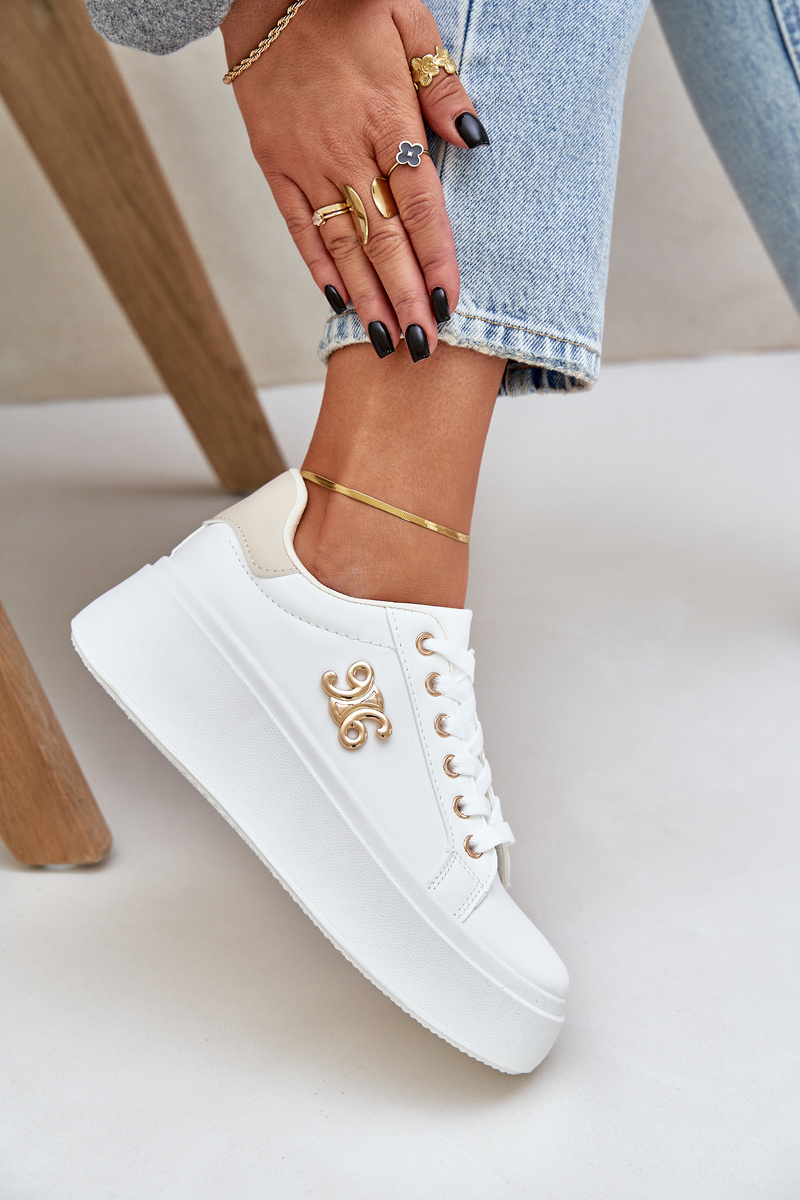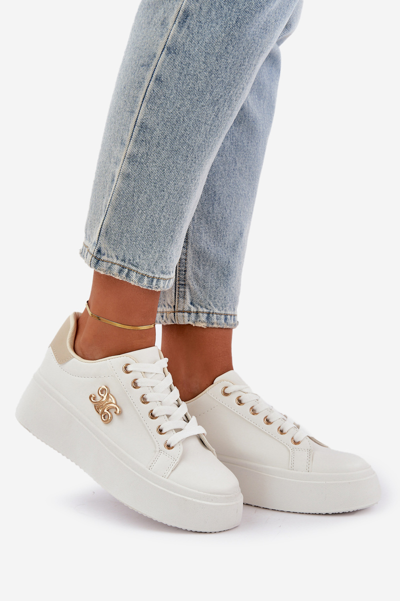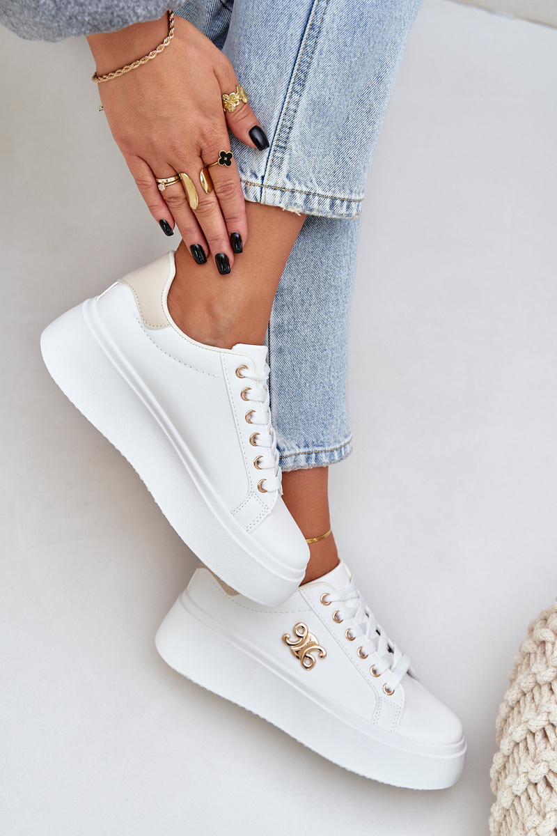 Buty Sportowe Sneakersy Damskie Na Platformie Biało-Beżowe Temittes
