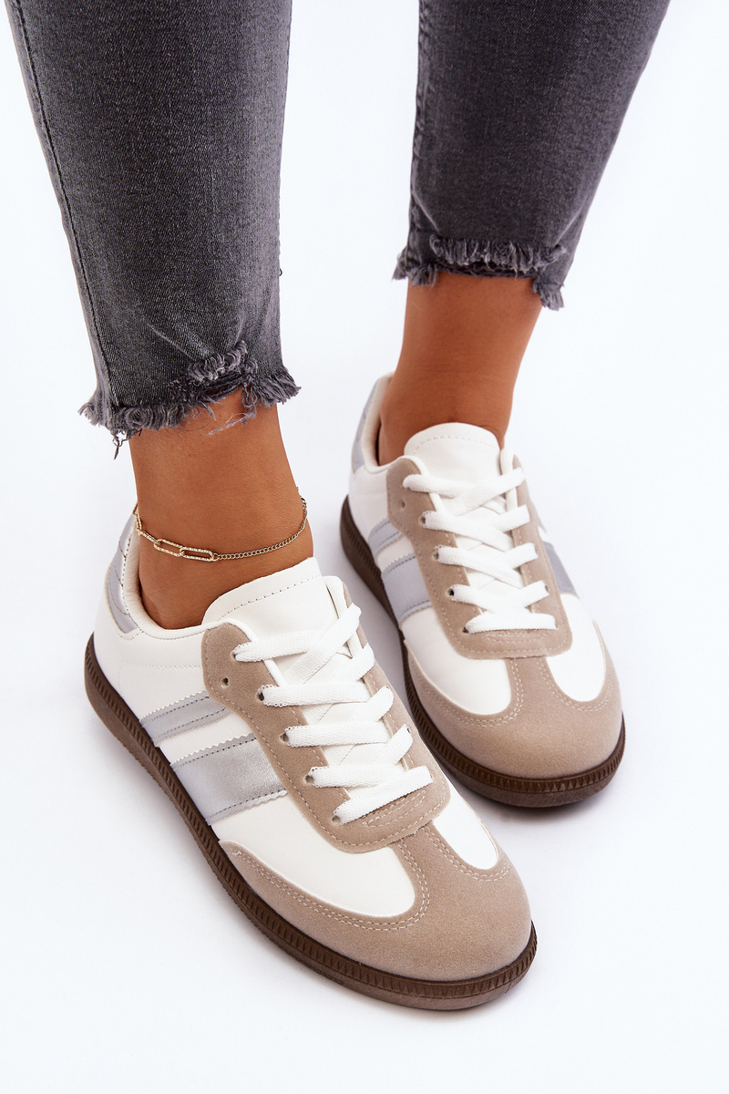 W szafie każdej kobiety powinna znaleźć się para wygodnych butów sportowych. Buty te wyróżniają się wygodą w użytkowaniu oraz wysoką jakością wykonania. Płaska podeszwa na delikatnej platformie świetnie izoluje od podłoża. Wykorzystasz je w wielu sytuacjach – podczas joggingu, spaceru czy spotkania ze znajomymi. Buty wykonane z eko skóry. Miękka, piankowa wkładka zapewni wygodę. Noski zaokrąglone. Klasyczne sznurowanie. Modny fason, który będzie pasować do niemalże każdej stylizacji!