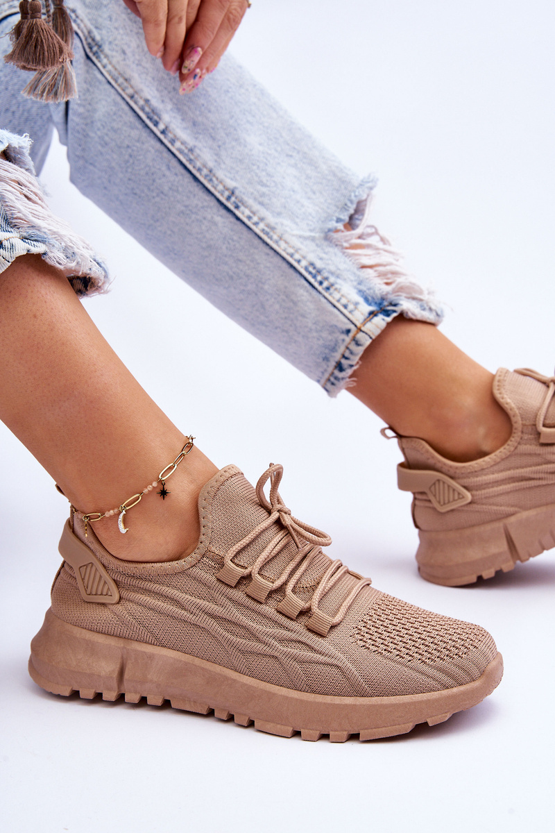 Buty Sportowe Sneakersy Damskie Wsuwane Ciemnobeżowe Rosett