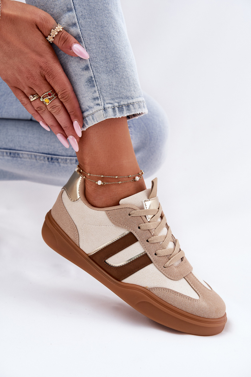 Buty Sportowe Sneakersy Z Eko Zamszu Damskie Beżowe Satylies