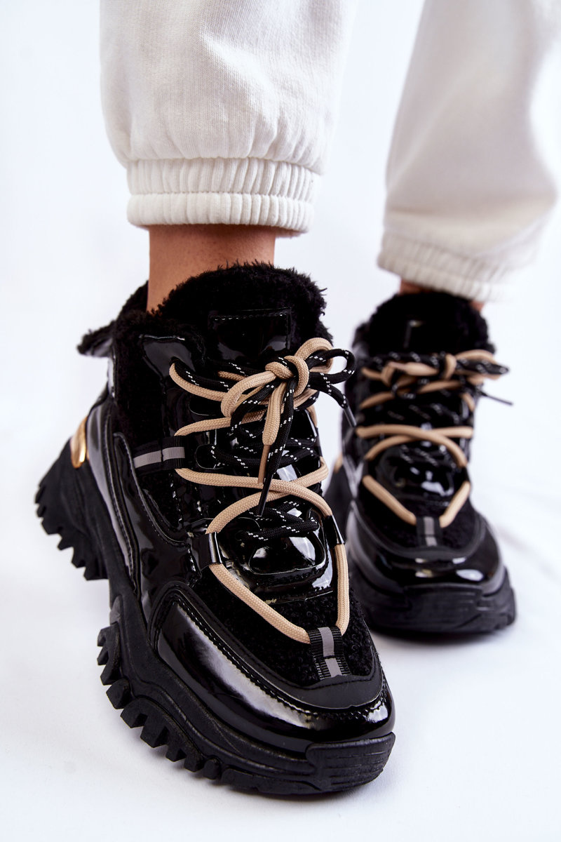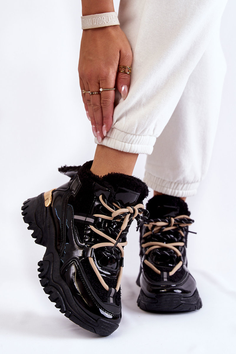 Buty Sportowe Trapery Damskie Ocieplane Czarne Edora