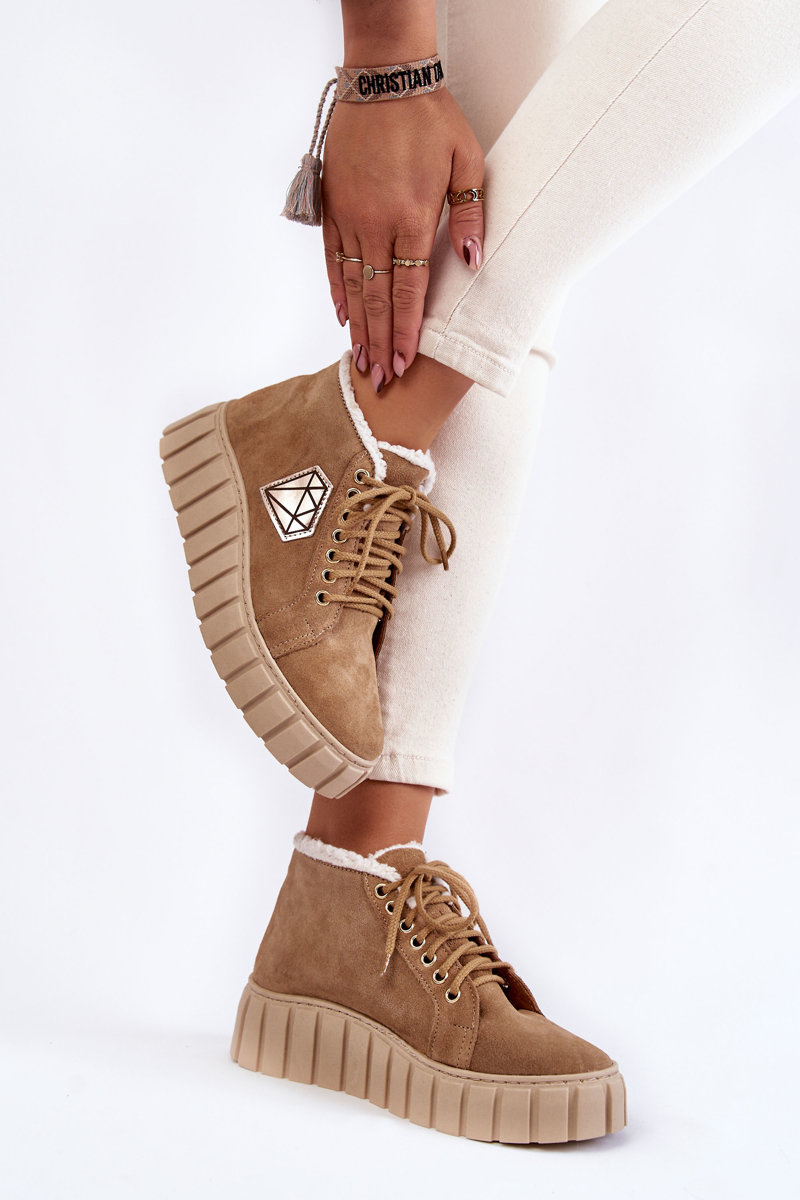 Buty Sportowe Zamsz Wiązane Beżowe Lewski Shoes 3252/N