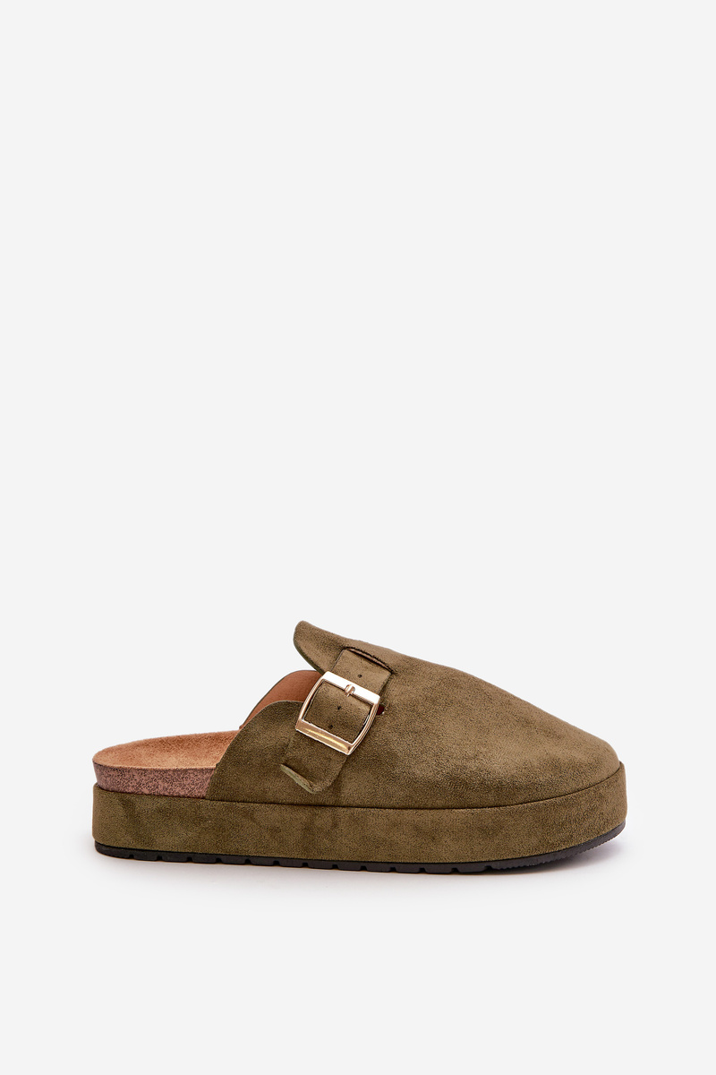 Chodaki Klapki Damskie Platforma Klamra Ciemnozielone Terilaina
