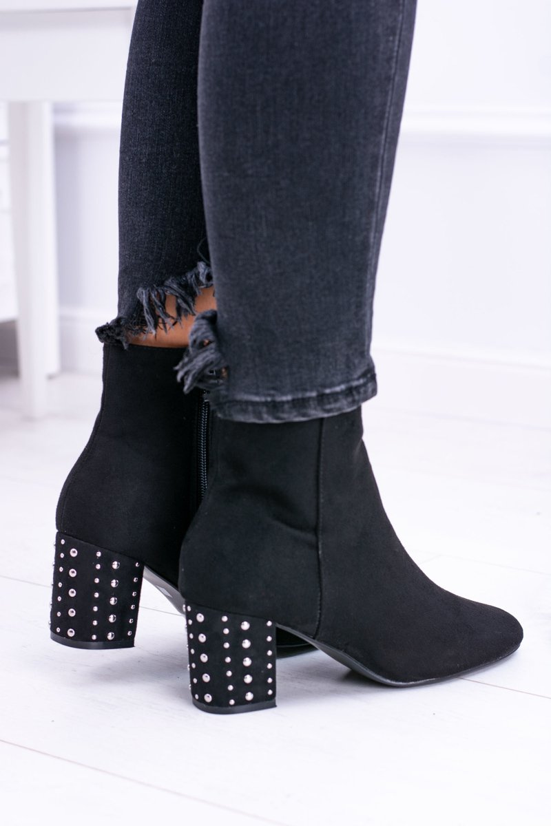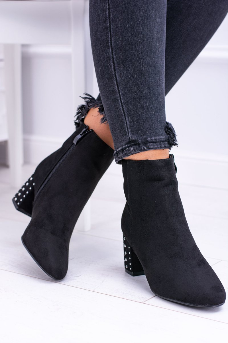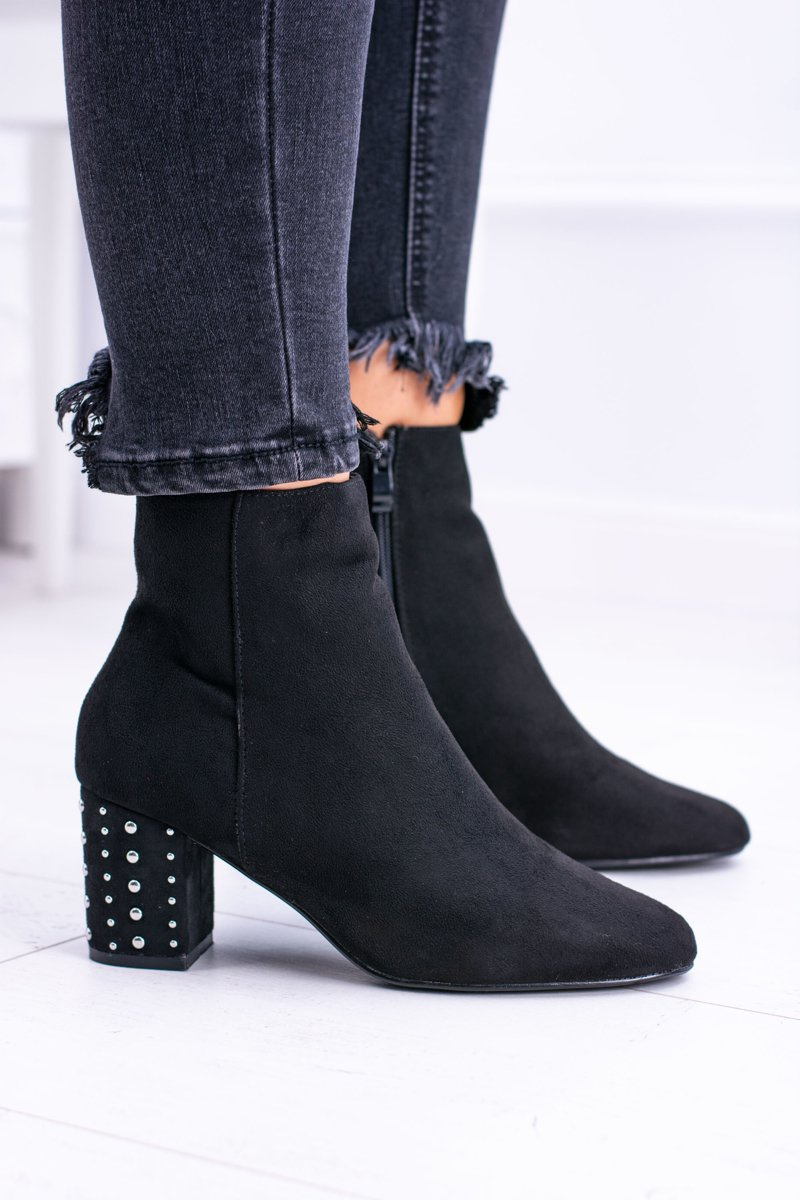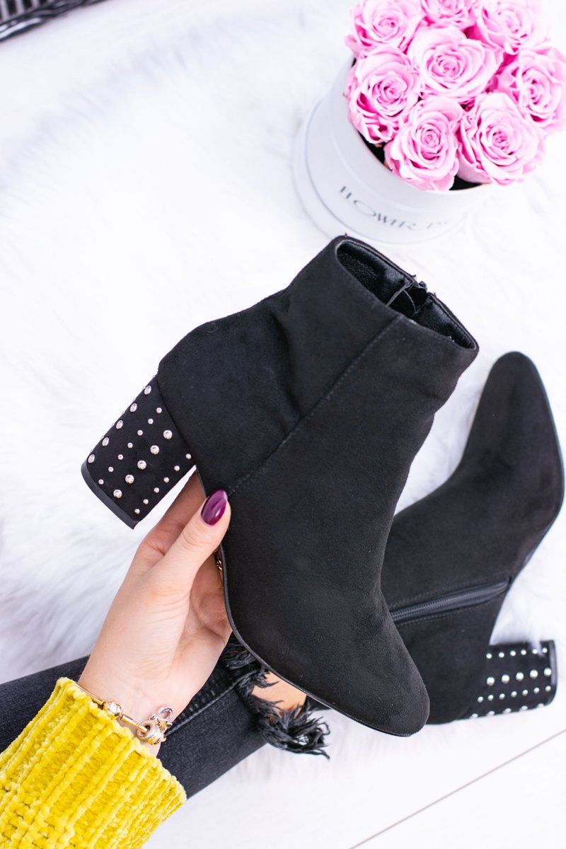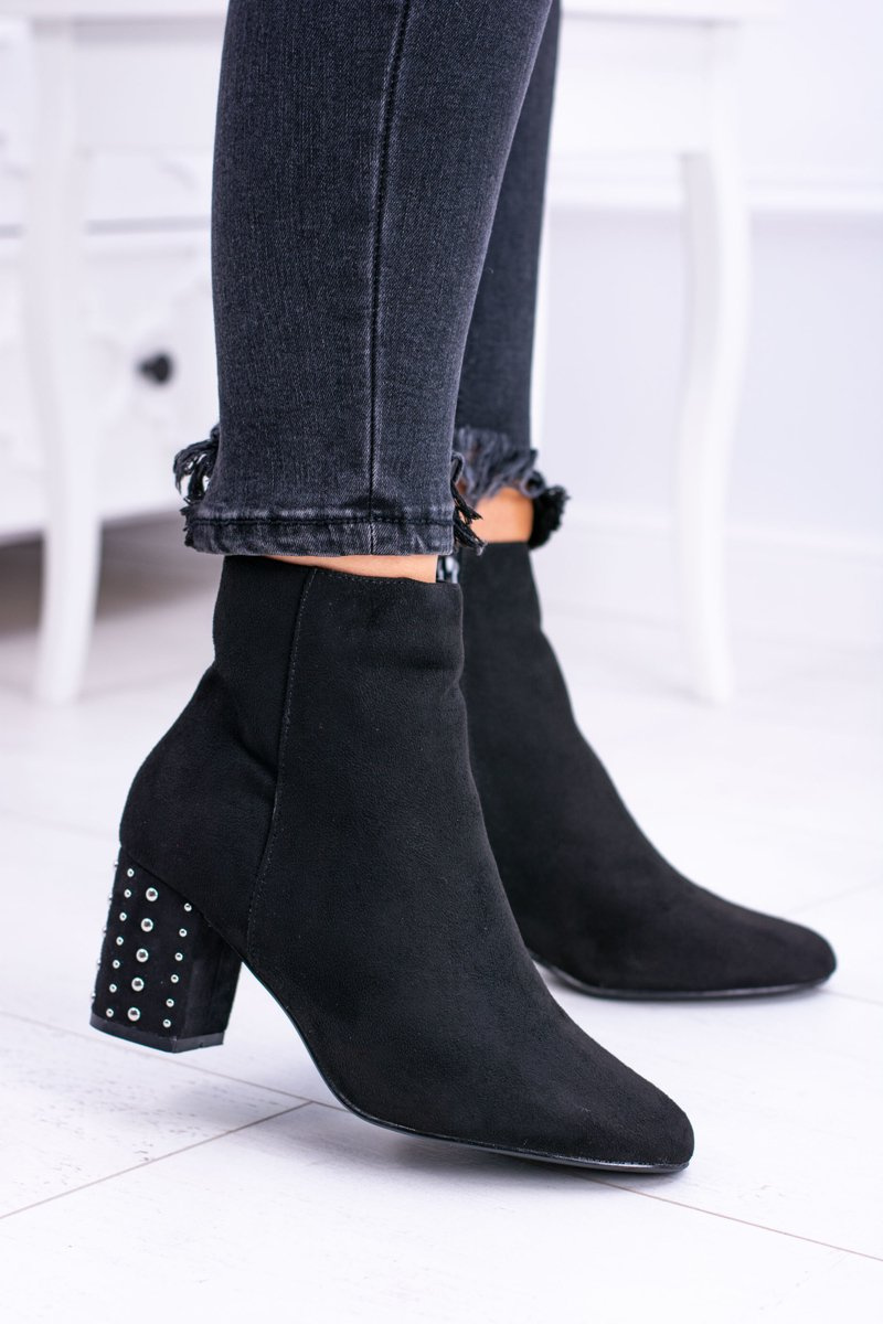Ciepłe Damskie Botki Na Słupku Czarne Jokasta
