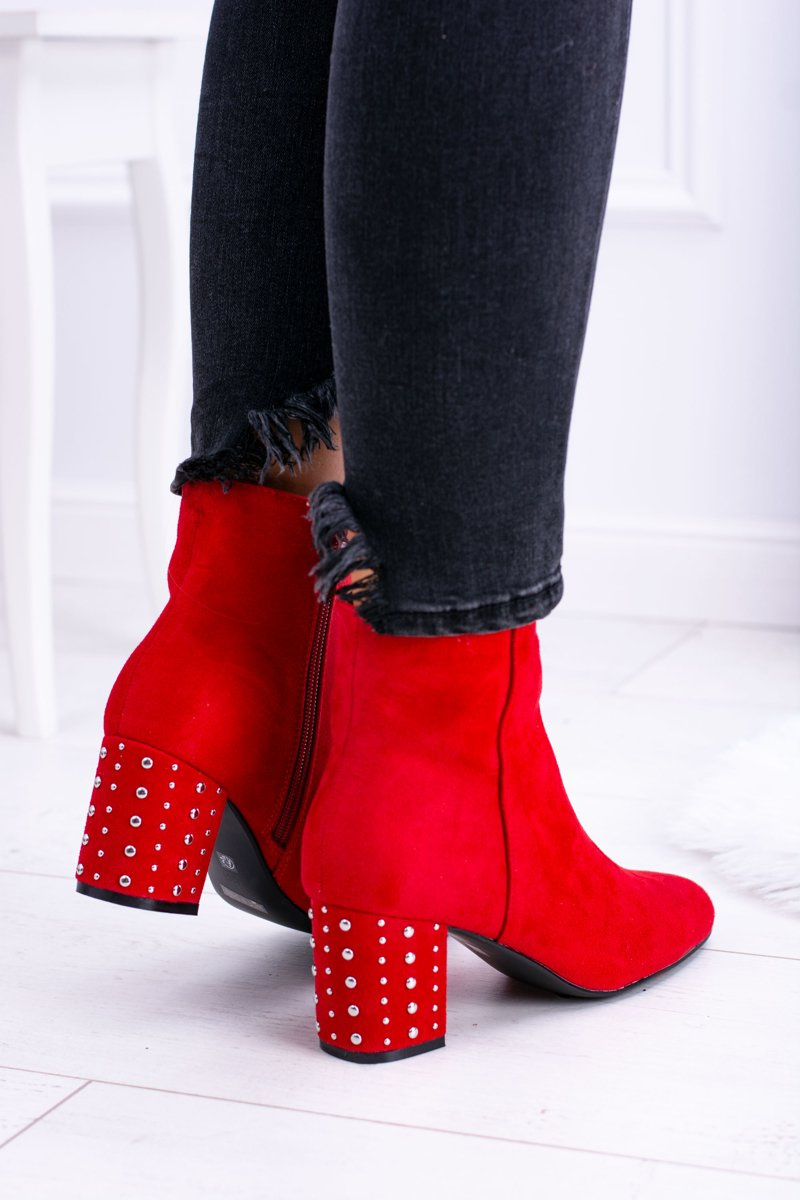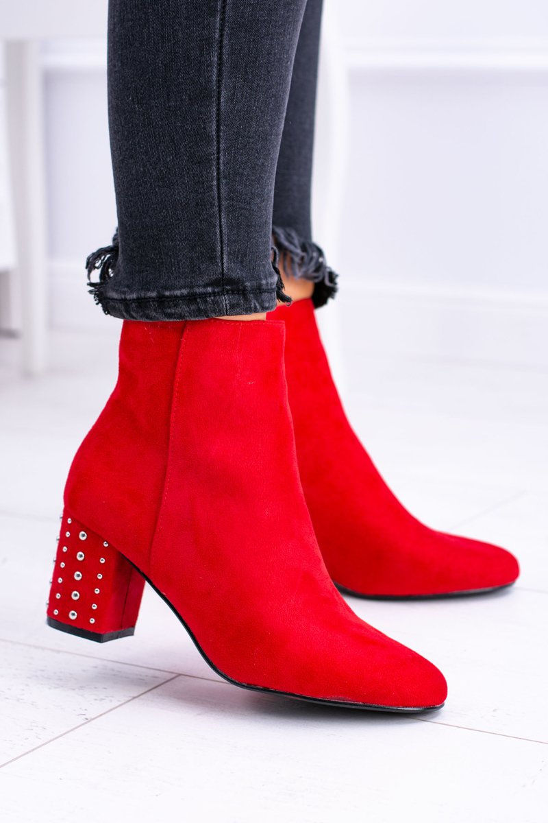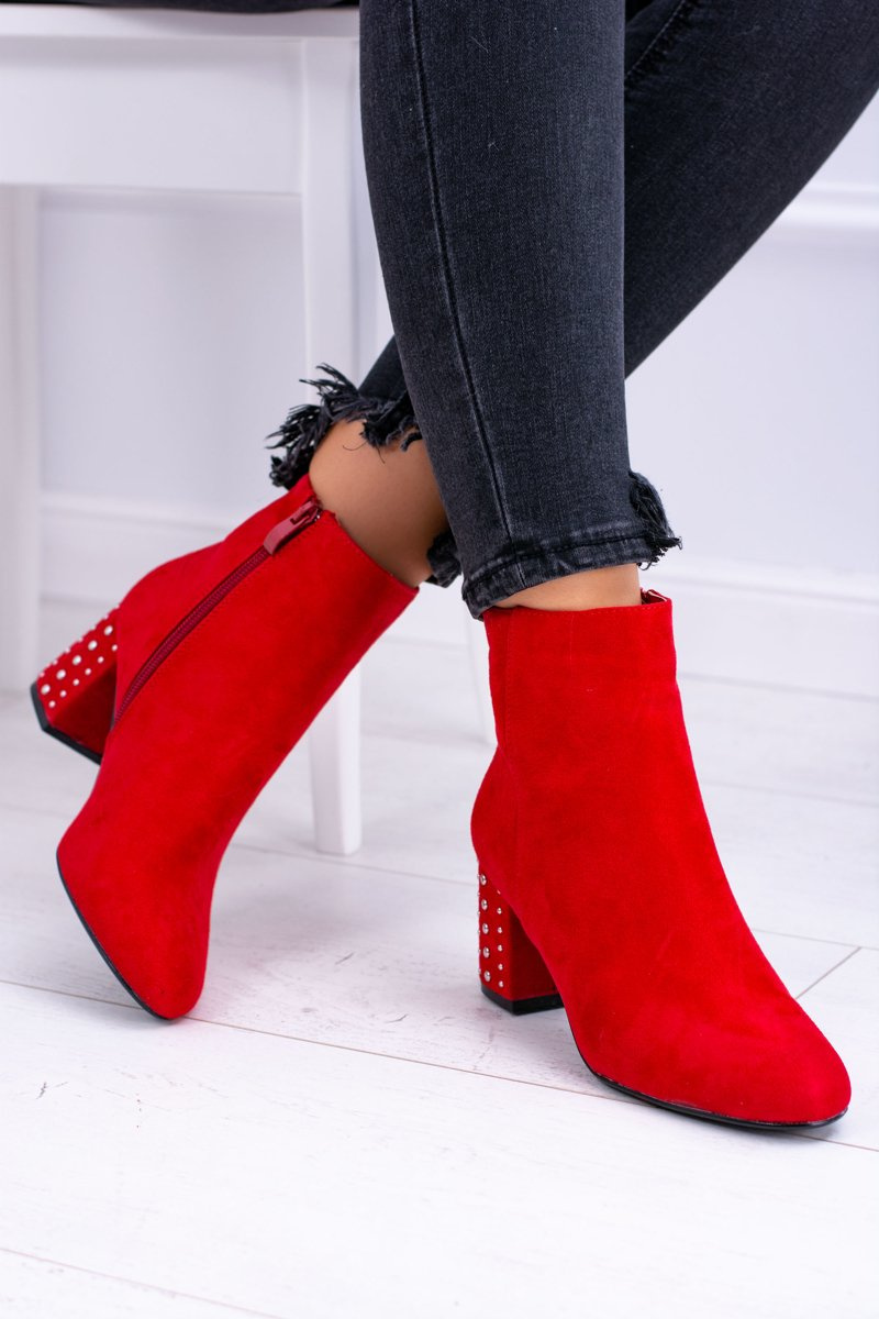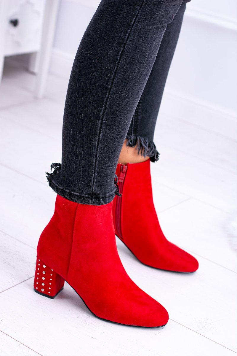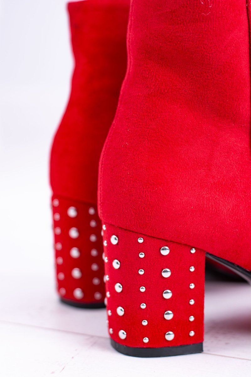 Ciepłe Damskie Botki Na Słupku Czerwone Jokasta