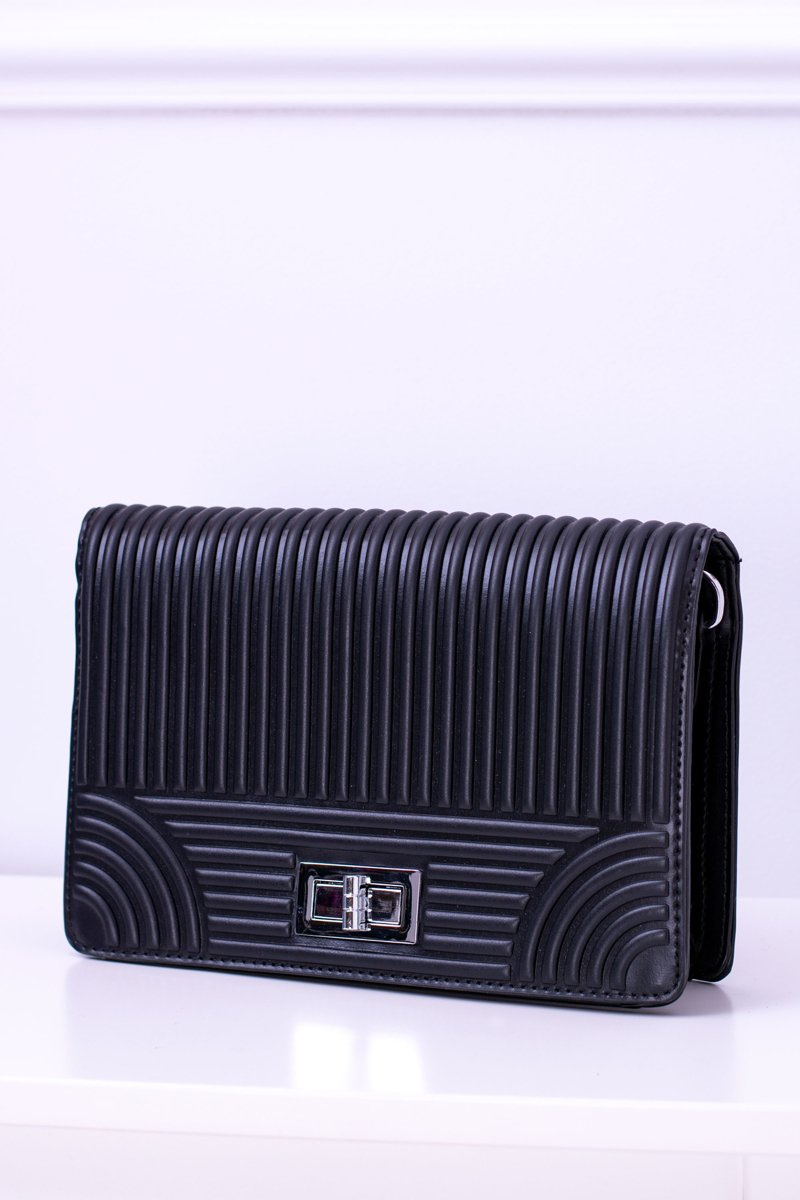 Czarna Damska Klasyczna Prążkowana Torebka