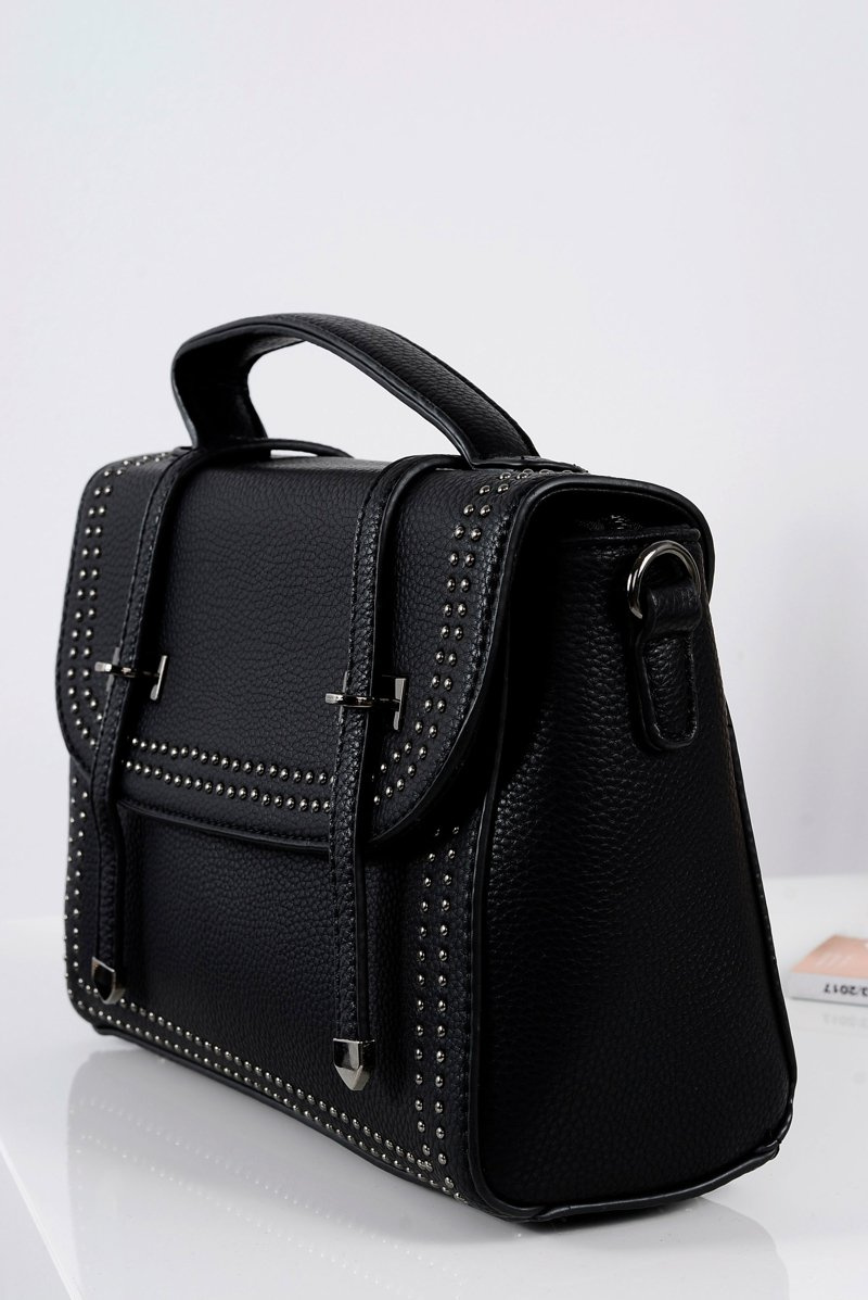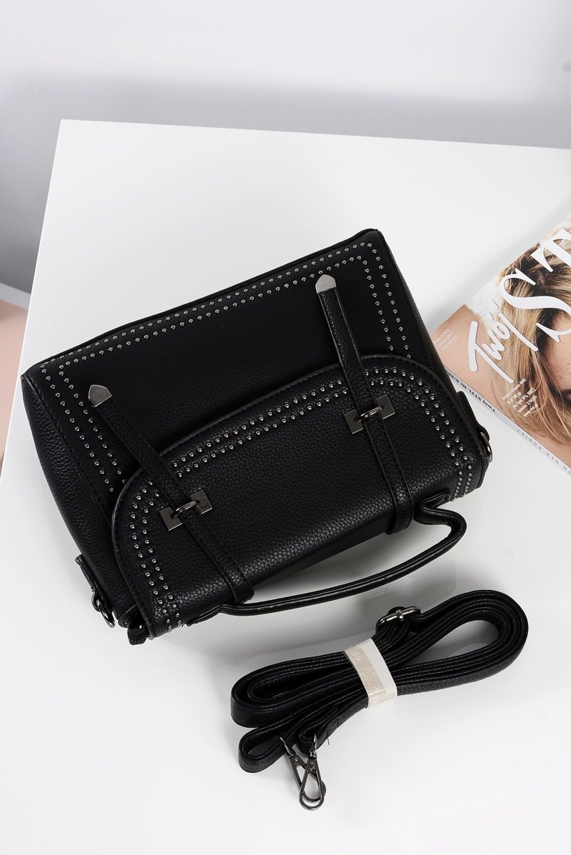 Czarna Torebka Damska Listonoszka Kuferek Dżety