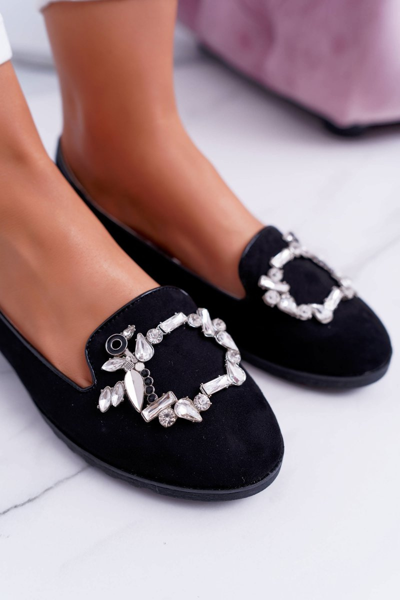 Czarne Damskie Balerinki Baleriny Cyrkonie Nergo
