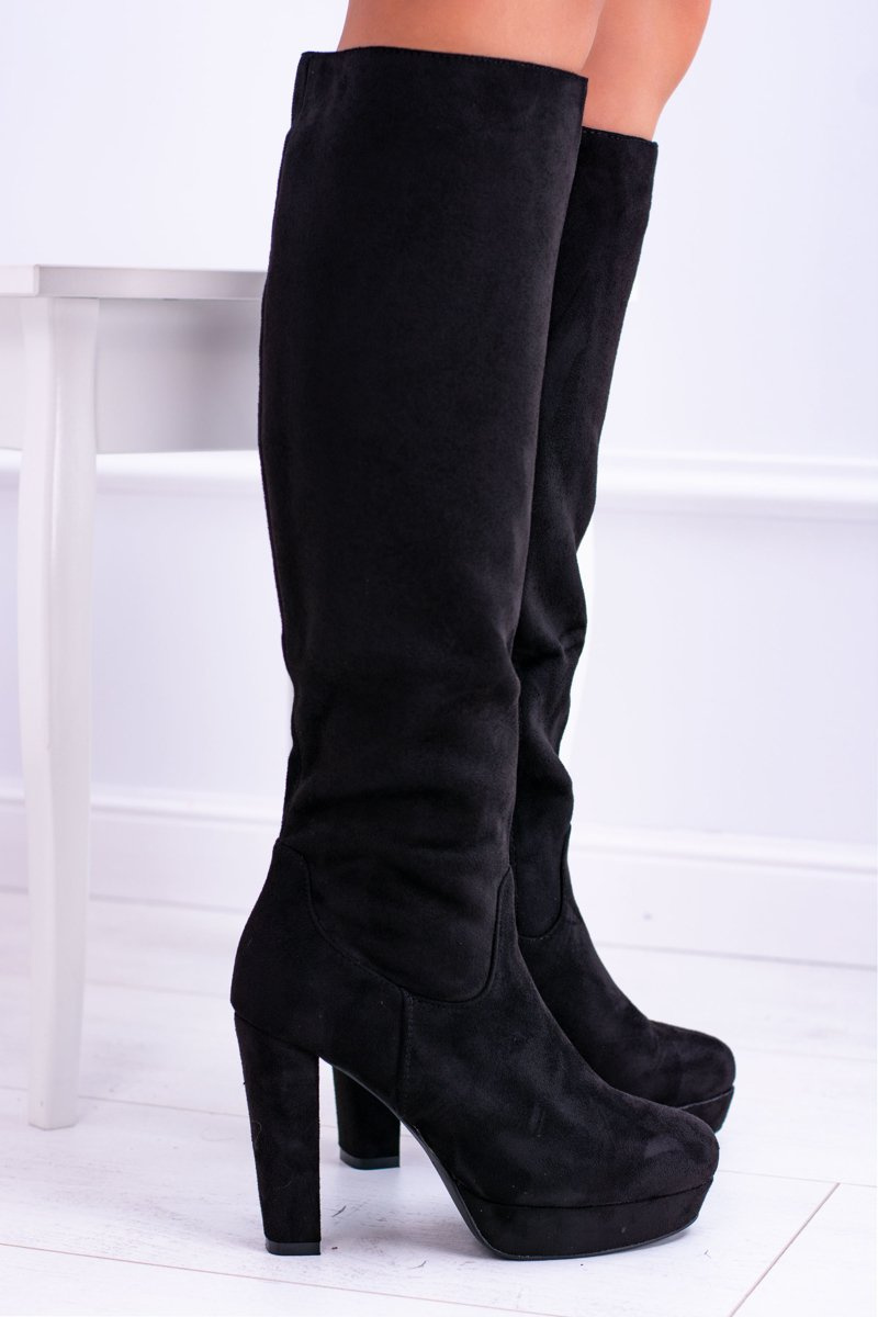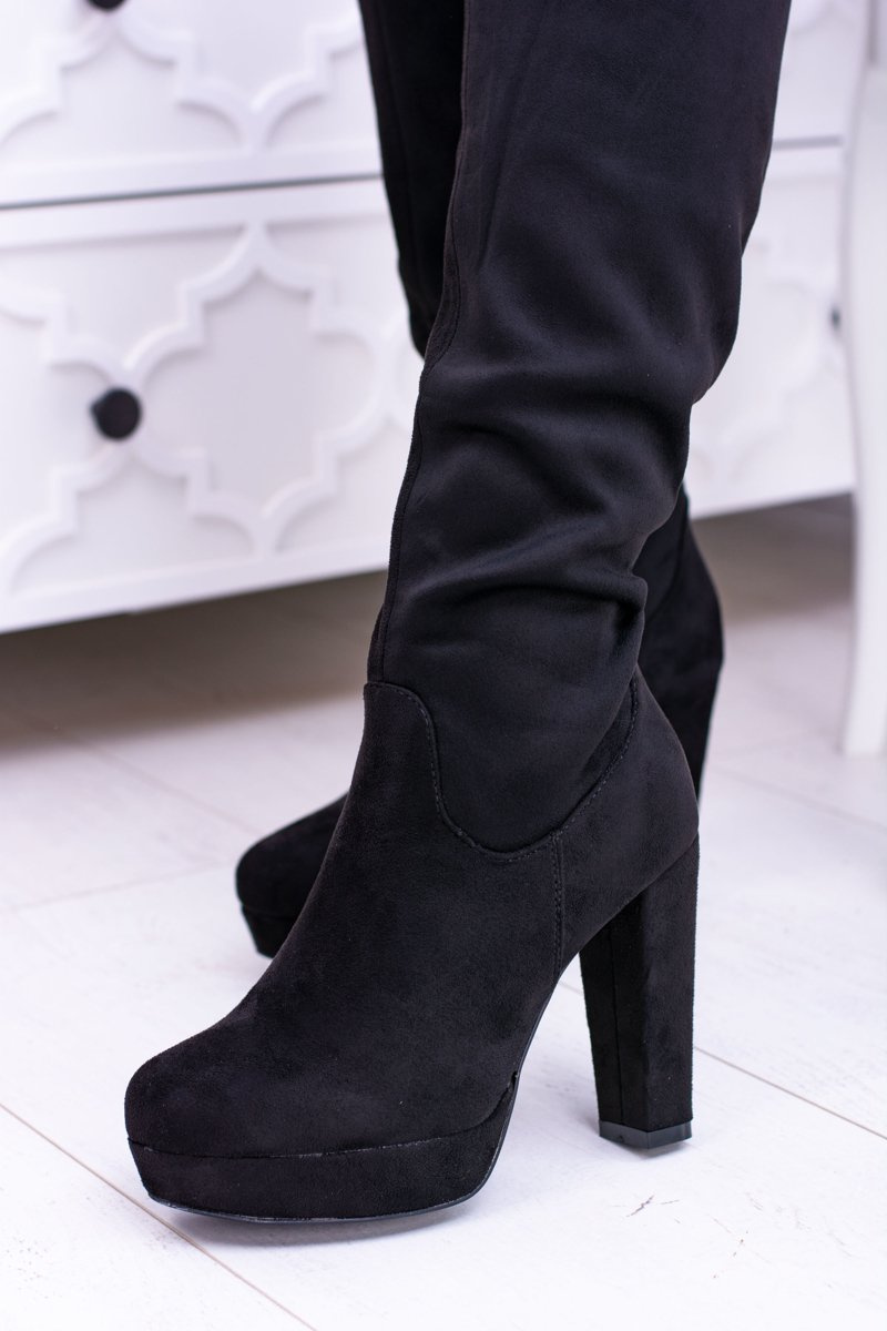 Czarne Damskie Kozaki Zamszowe Na Platformie Sergio Leone KZ296