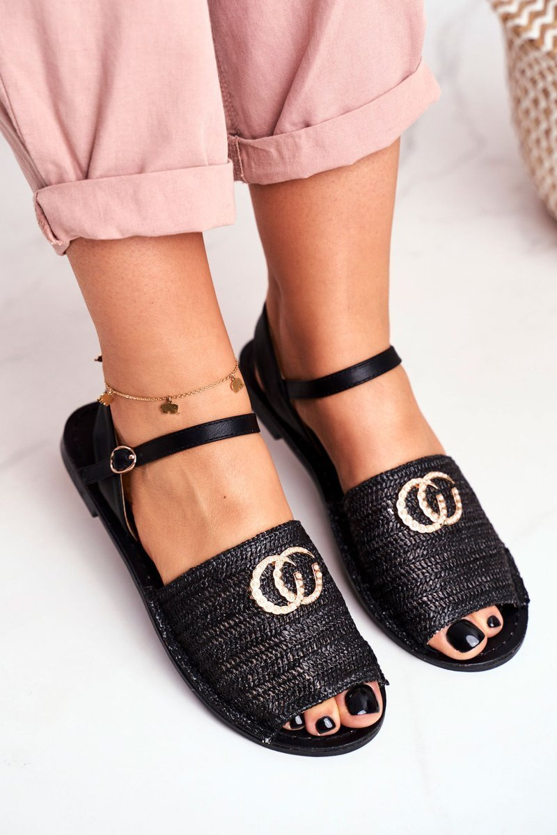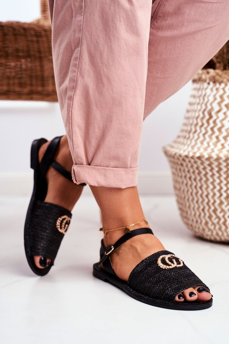 Czarne Damskie Płaskie Sandałki Lu Boo Plecione Felicia