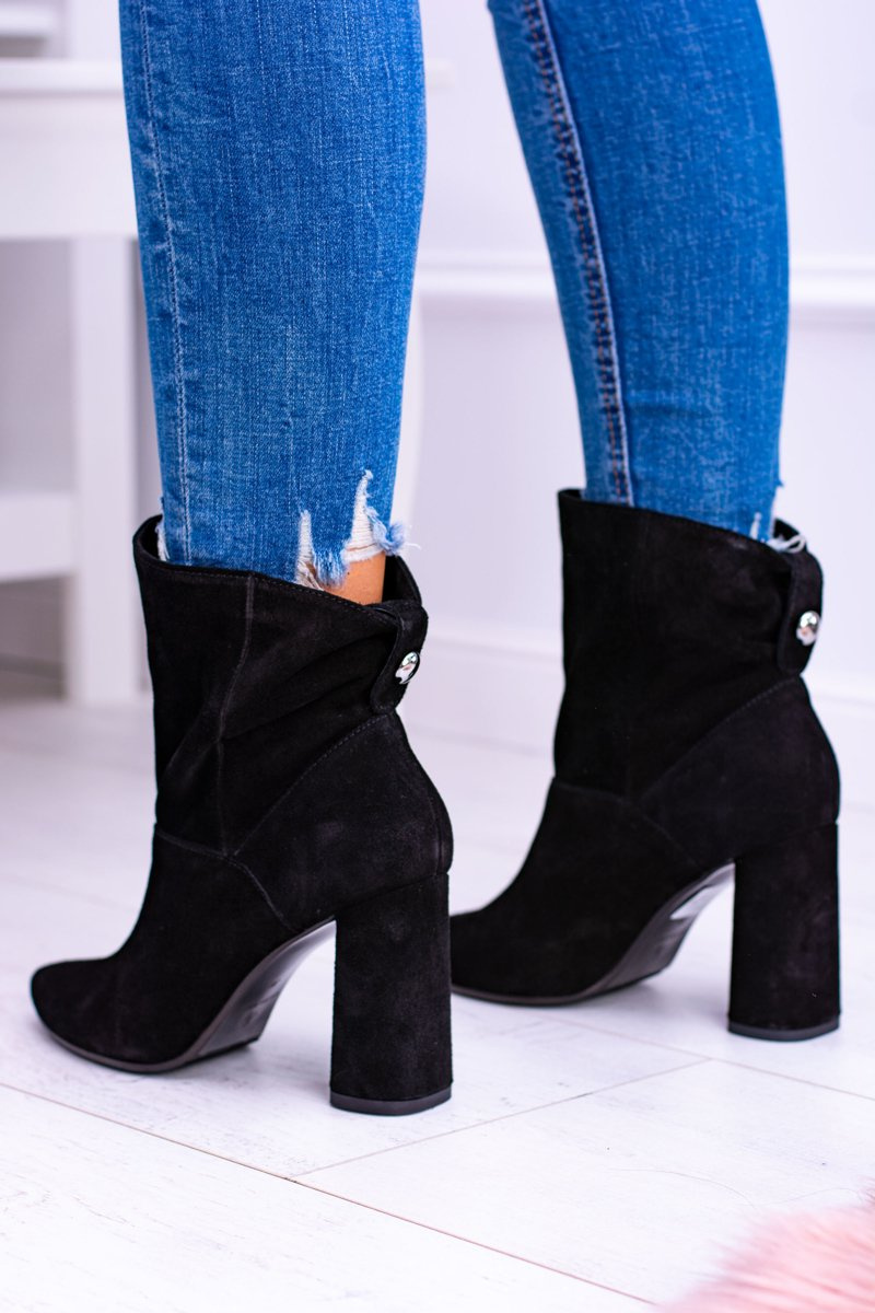 Czarne Wysokie Zamszowe Botki na Słupku Laura Messi 1857