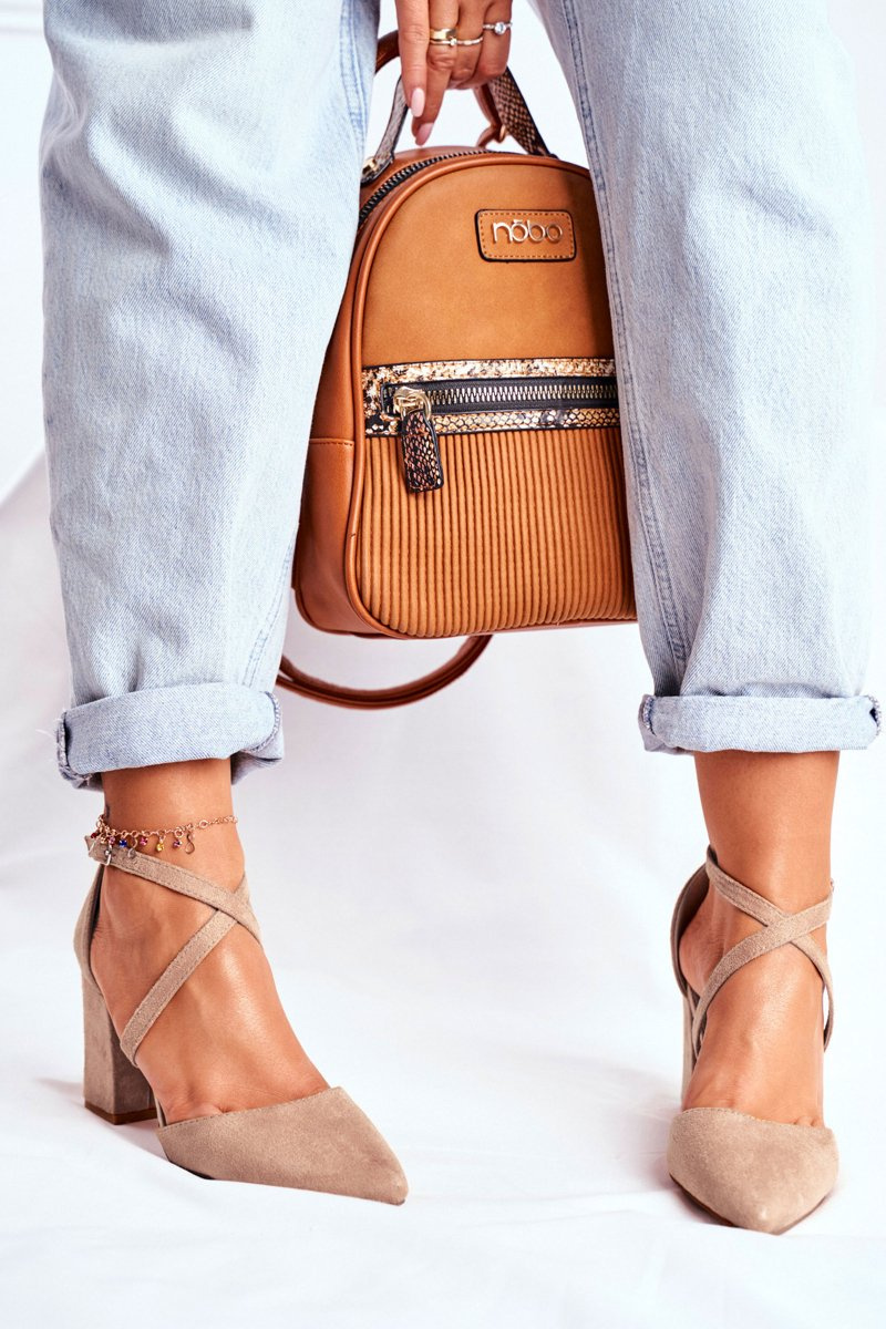 Czółenka Damskie Na Słupku W Szpic Beżowe Traffic