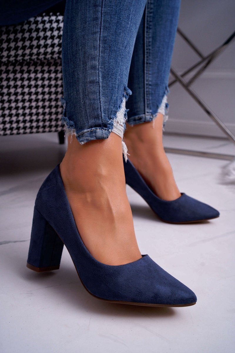 Czółenka Damskie Na Słupku Zamszowe Granatowe Florena