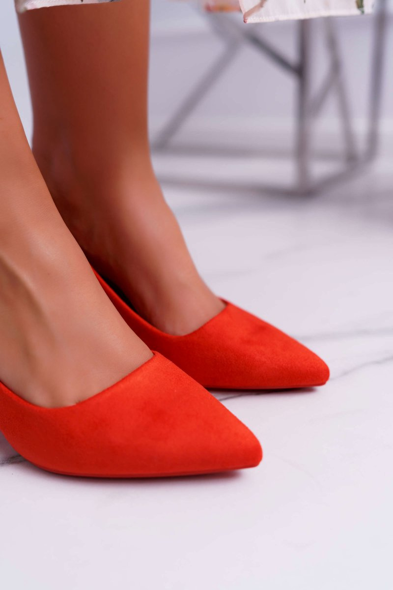 Czółenka Damskie Na Słupku Zamszowe Pomarańczowe Neshka