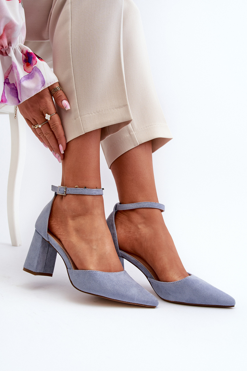Czółenka Eko Zamszowe Na Słupku Noski W Szpic Niebieskie Halene Y2385-1