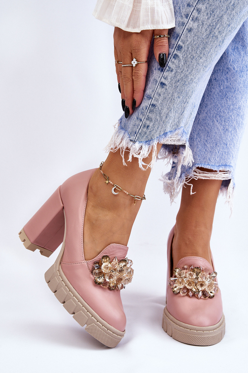 Czółenka Eleganckie Z Ozdobą Gładkie Różowe Caterine