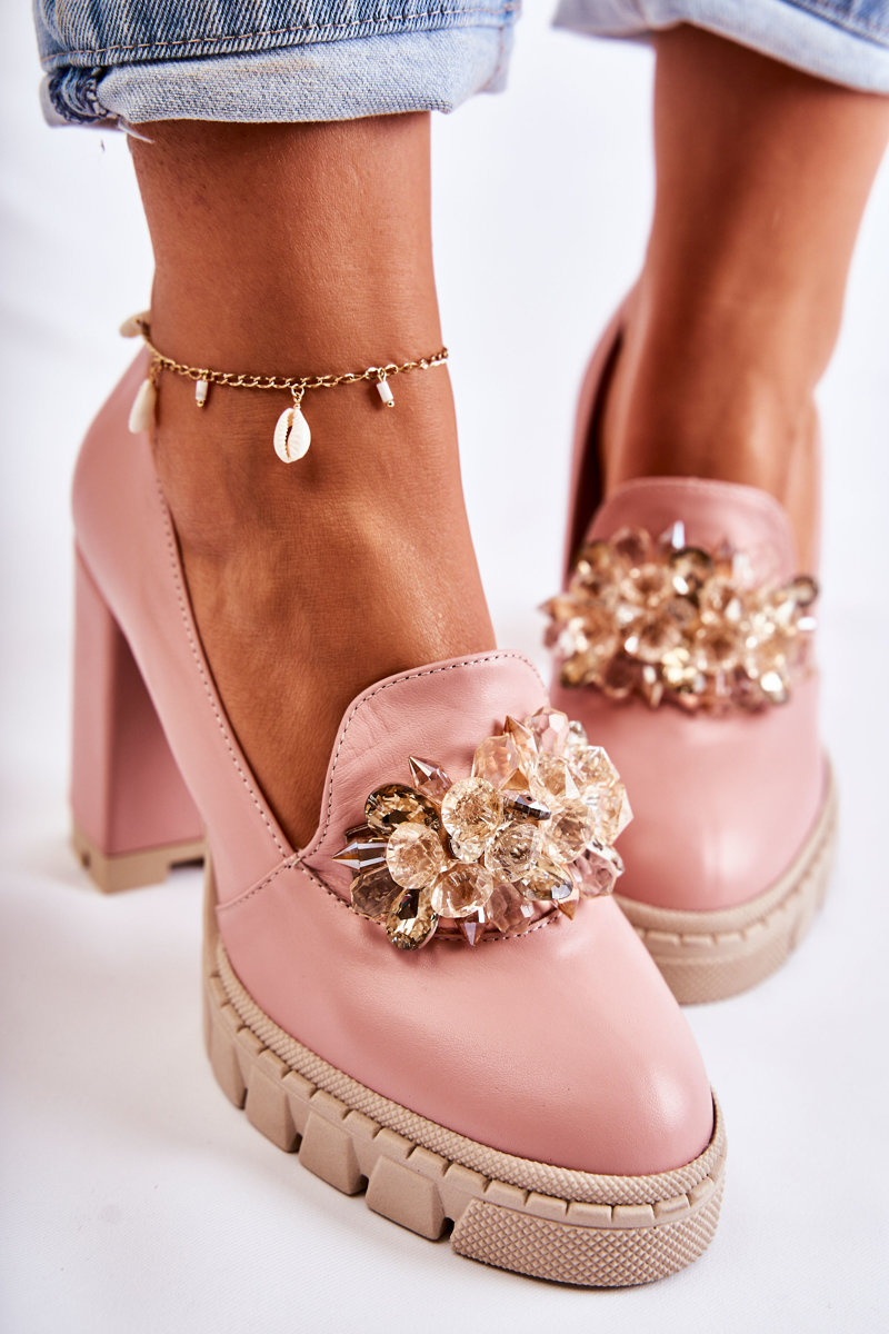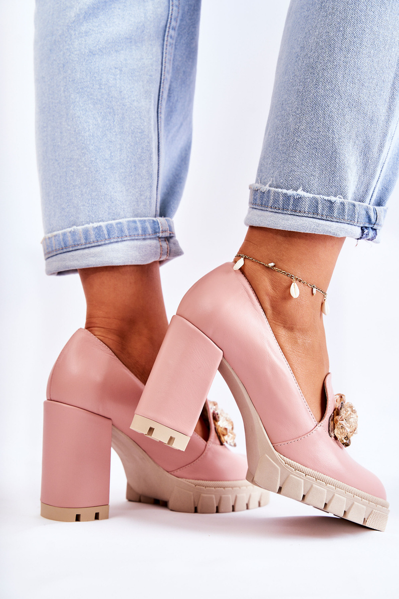 Czółenka Eleganckie Z Ozdobą Gładkie Różowo-Beżowe Caterine