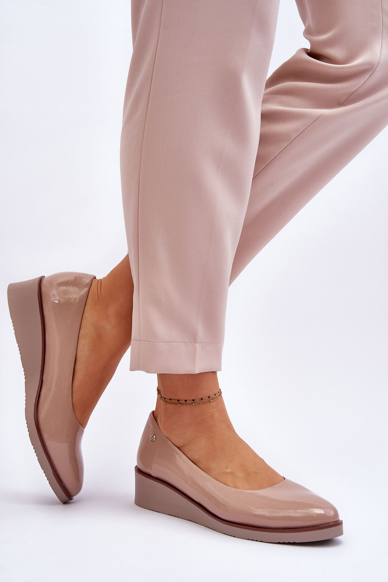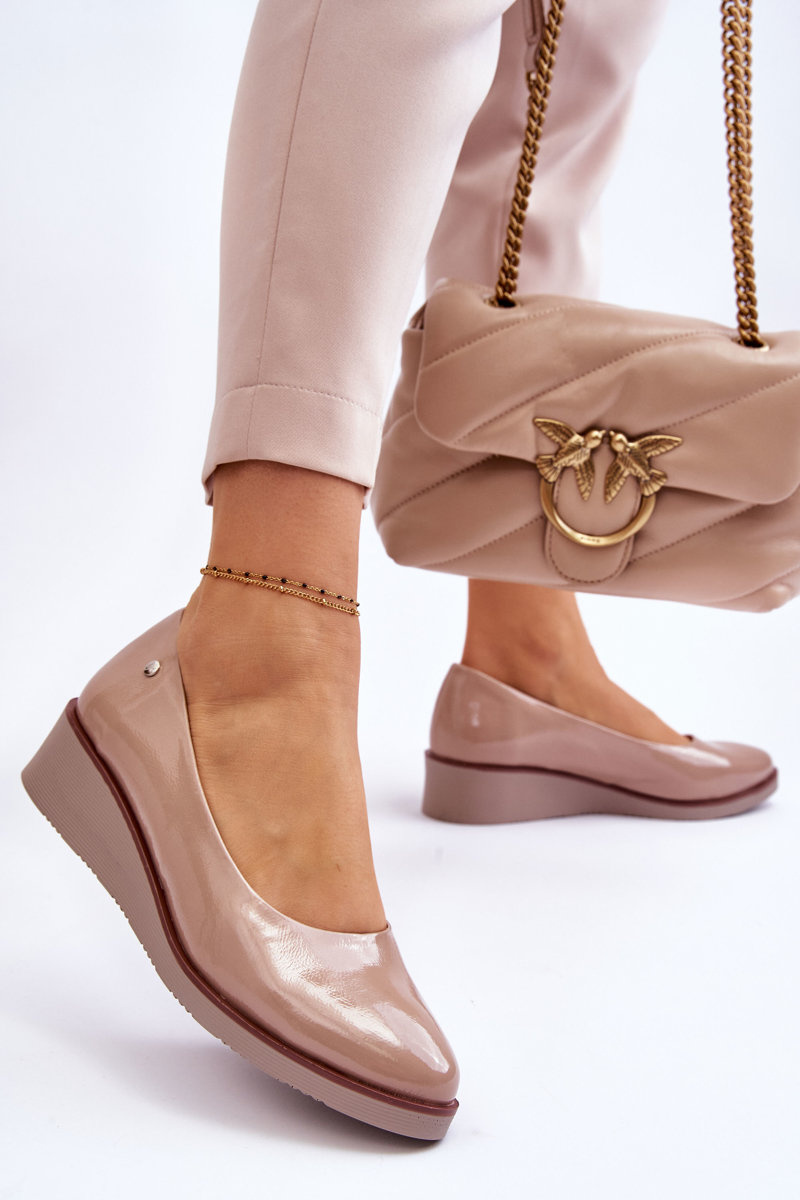 Czółenka Klasyczne Lakier Koturn Beżowe Paola