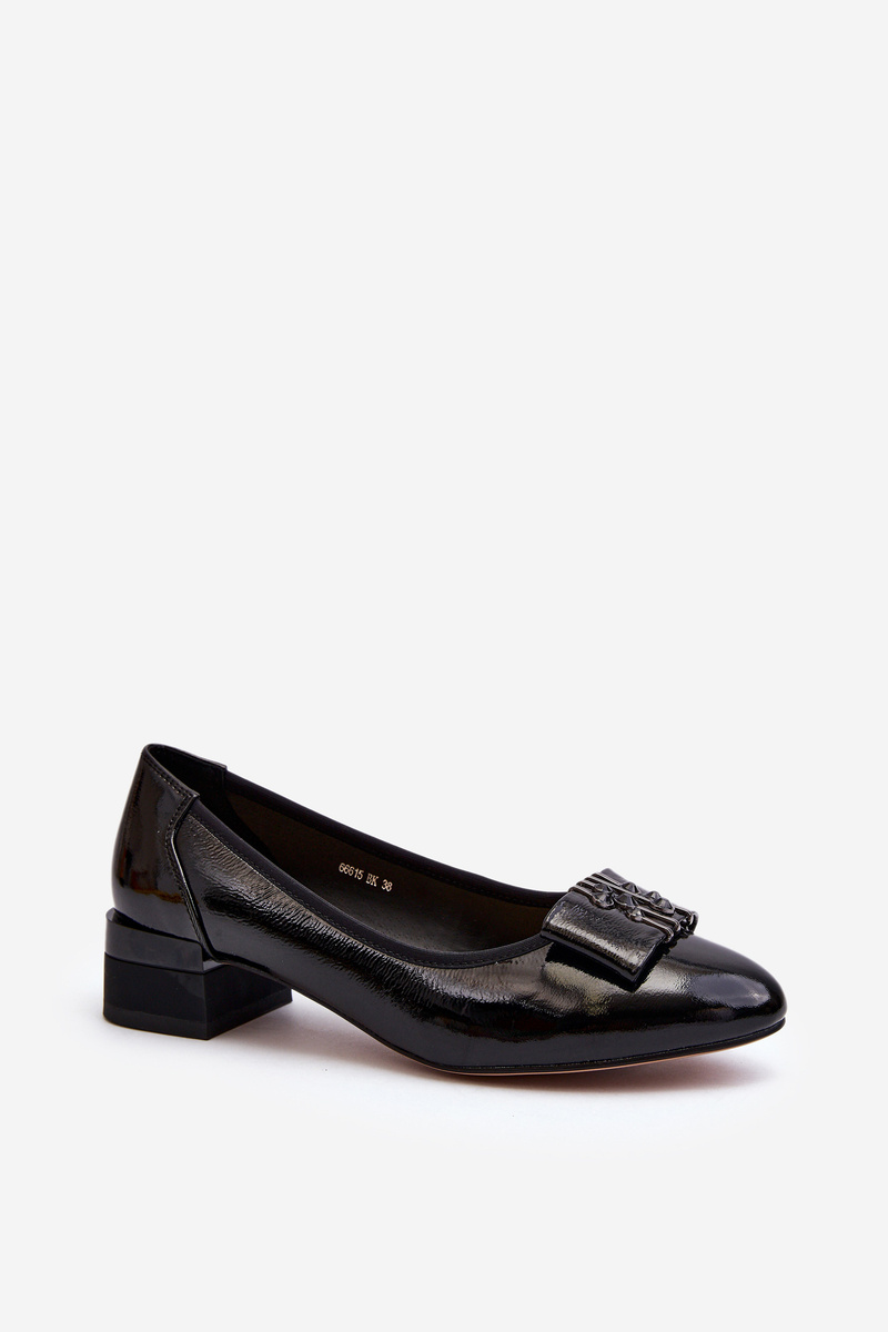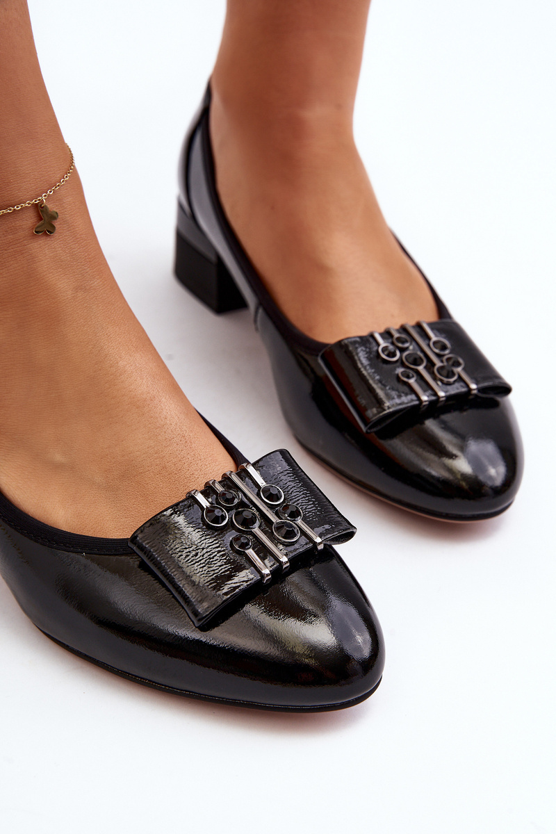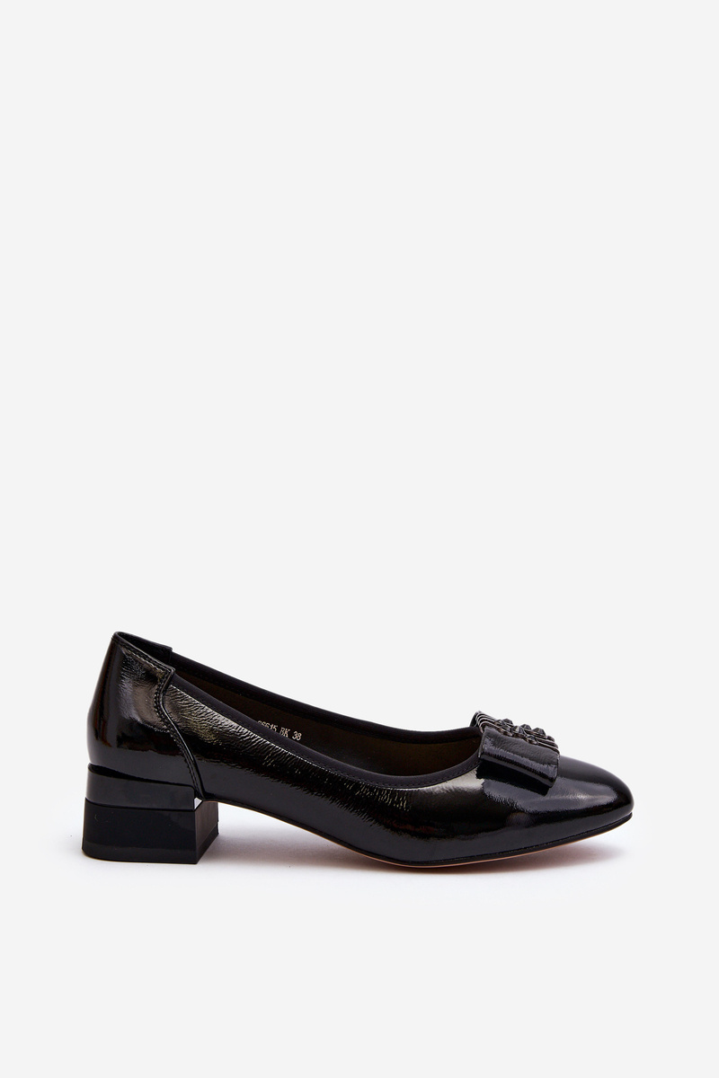 Czółenka Lakierowane Obcas Klocek Czarne Ilvanna 66615