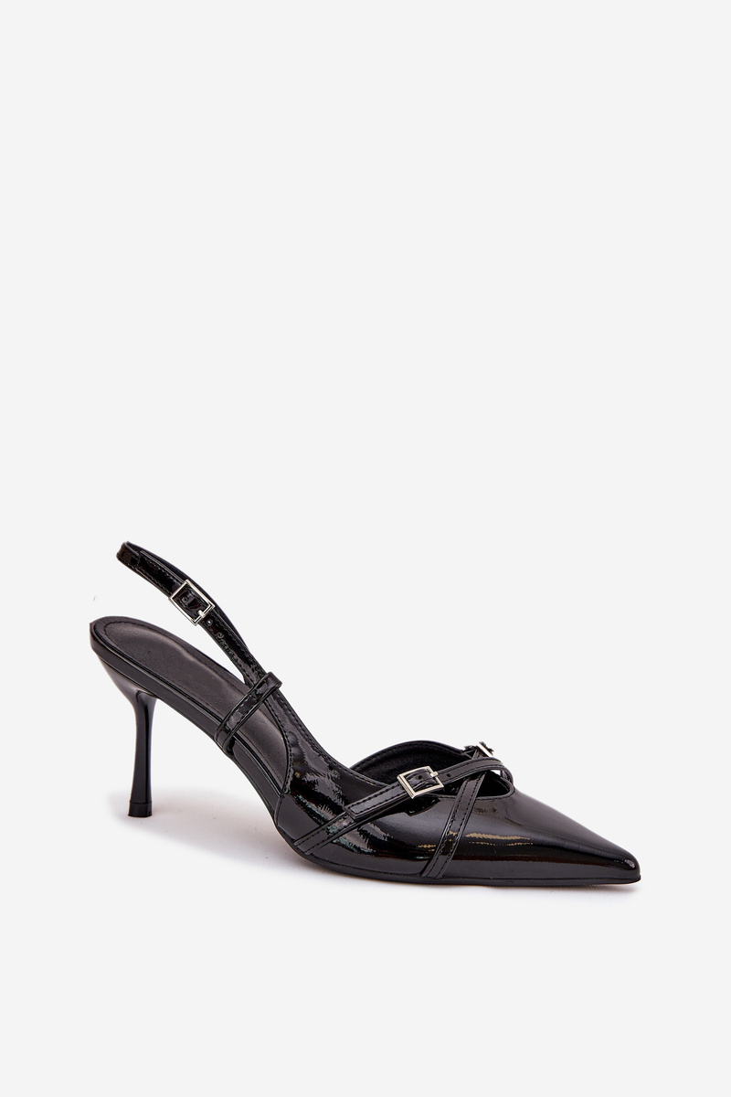 Czółenka Lakierowane Odkryta Pięta Paseczki Czarne Ravira