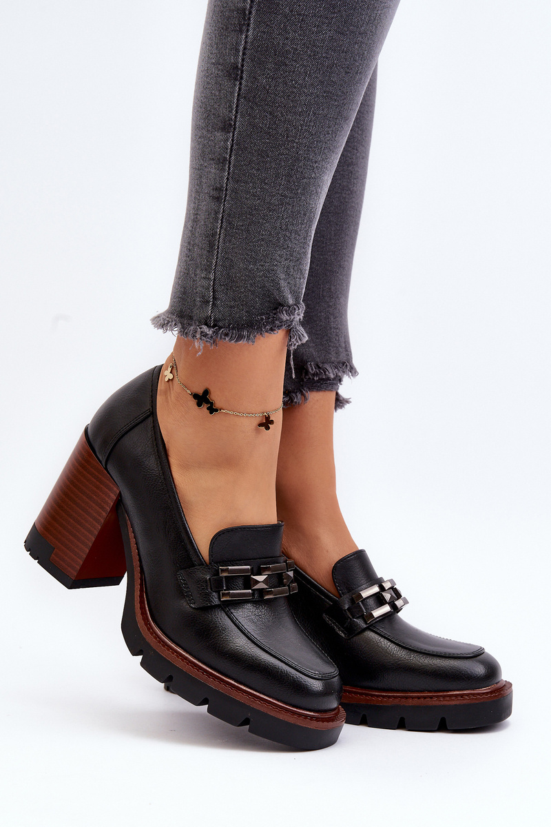 Czółenka Masywny Obcas Ozdoba Oradna Czarne 58258