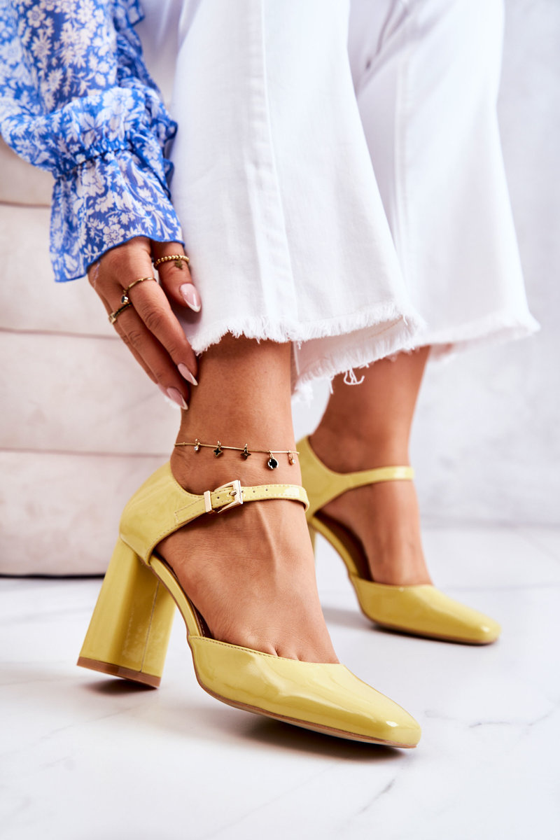 Czółenka Modne Lakier Obcas Słupek Żółte Maoris