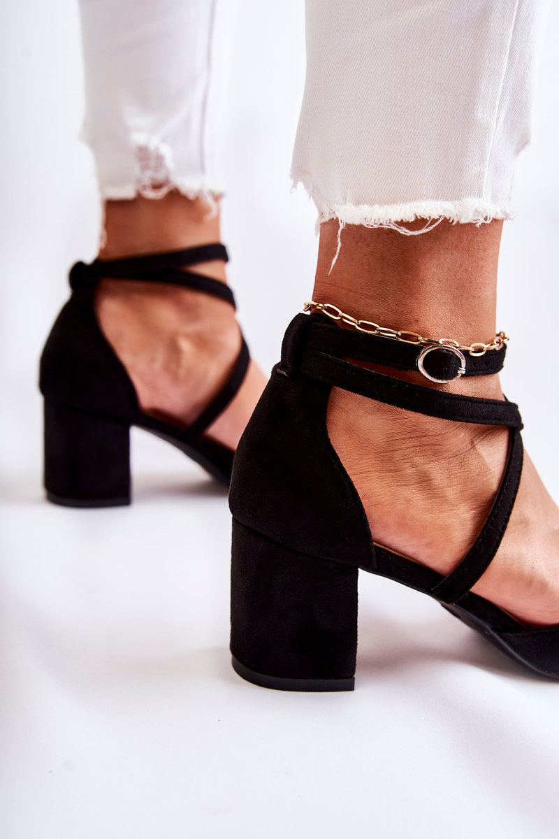 Czółenka Modne Niski Słupek Czarne Crissa
