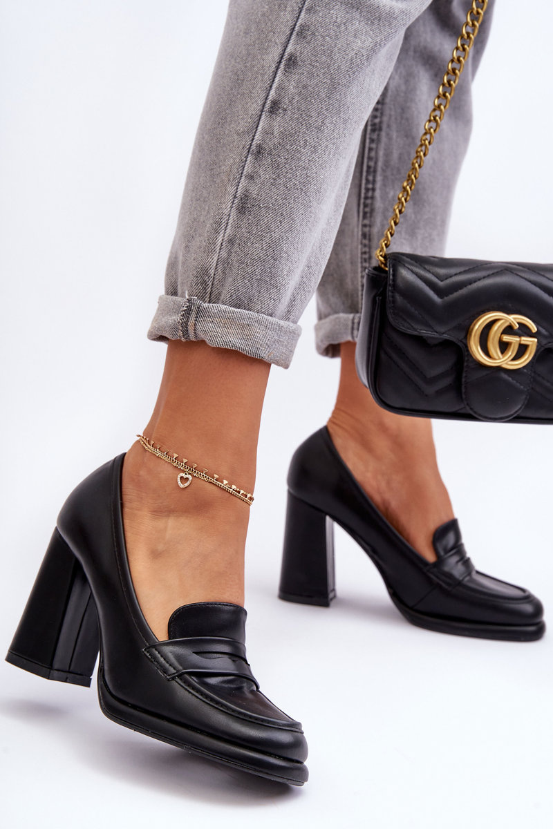 Czółenka Modne Słupek Czarne Florence KK56