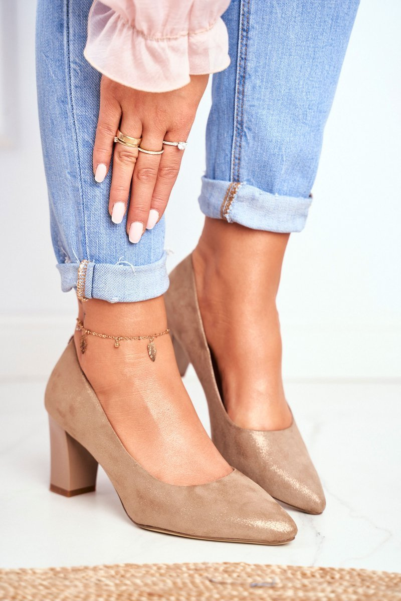 Czółenka Na Słupku Sergio Leone PB403 Połyskujące Beżowe