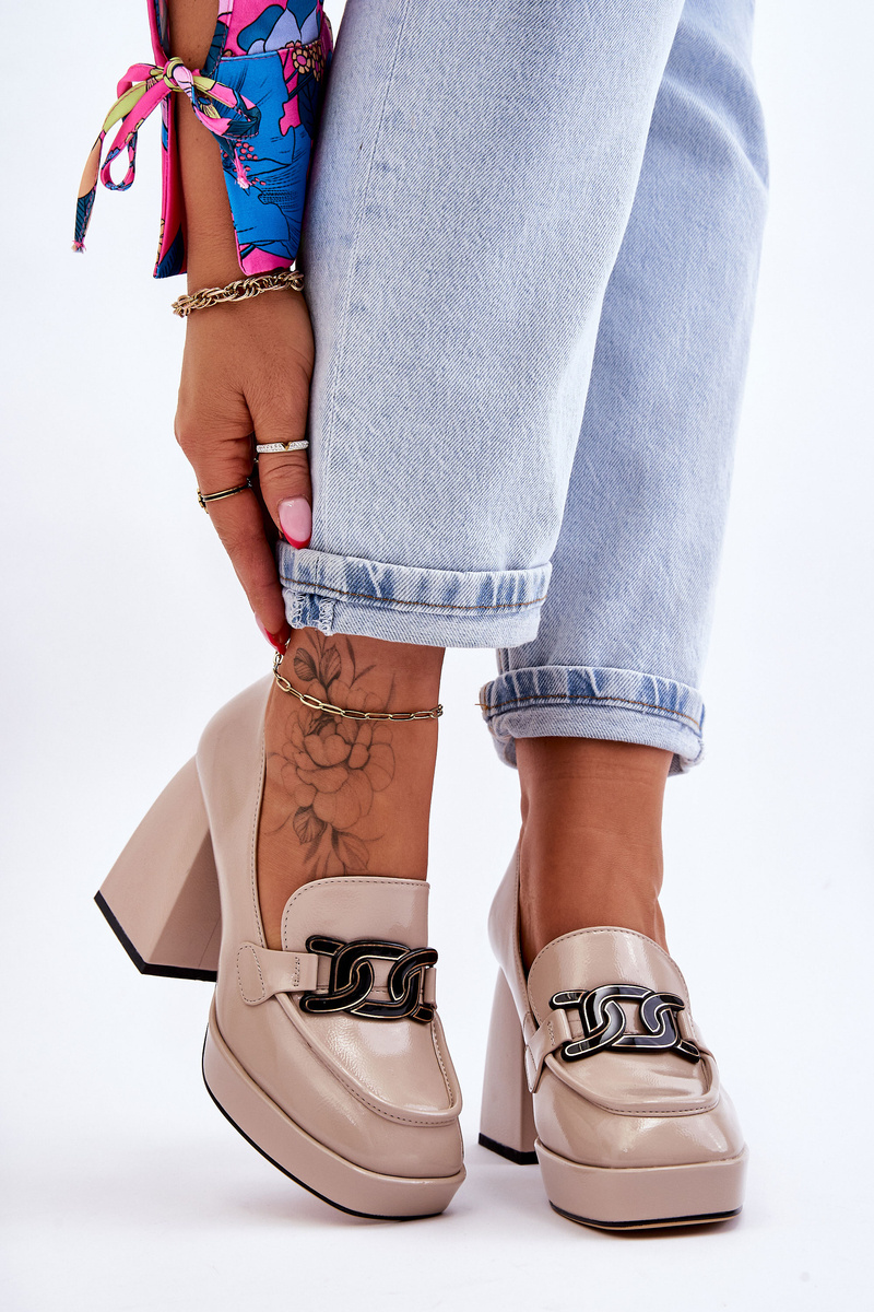 Czółenka Skóra Masywny Obcas Beżowe Maximo