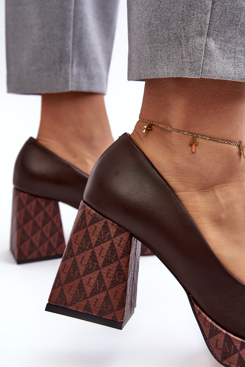 Czółenka Skóra Słupek Brązowe Laura Messi 259/236-820