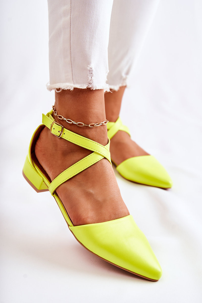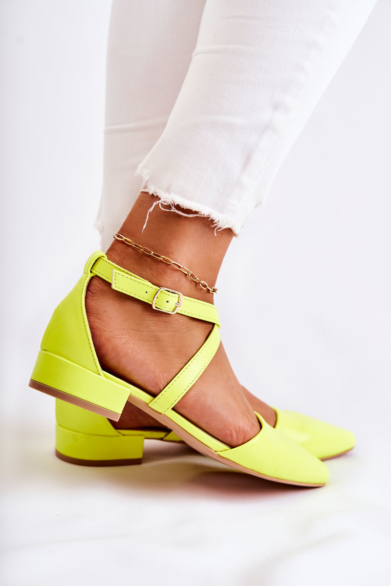 Czółenka Skórzane Niski Obcas Żółte Giovanna