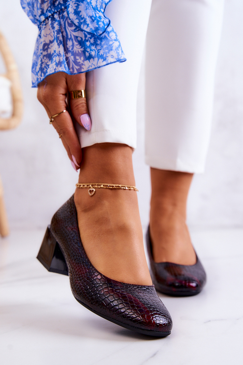 Czółenka Skórzane Wężowe Bordowe Mesquite