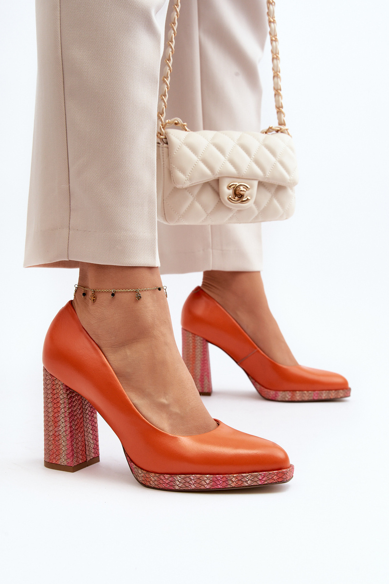 Czółenka Słupek Skóra Naturalna Pomarańczowe Laura Messi 2746