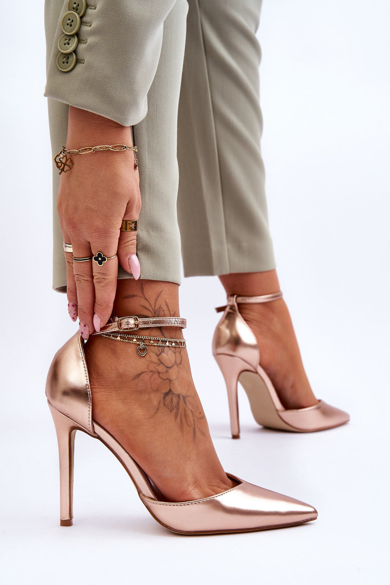 Czółenka Szpilki Wysokie Nosek W Szpic Różowe Złoto Reflection