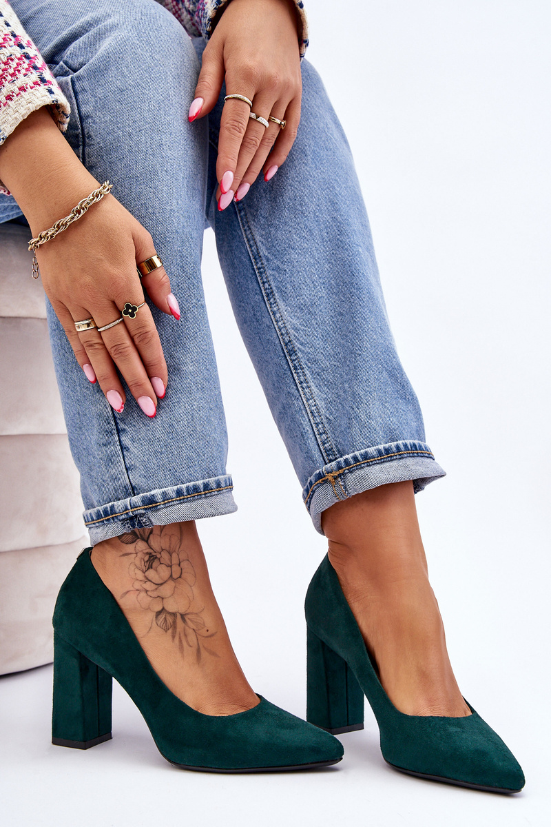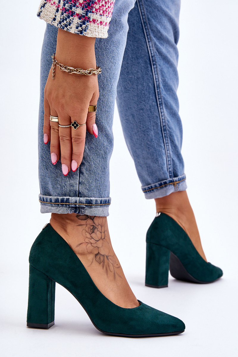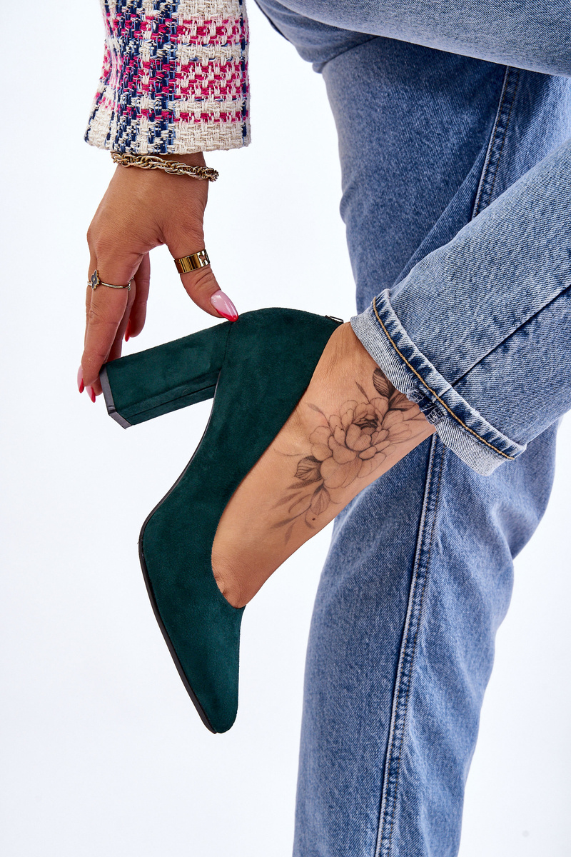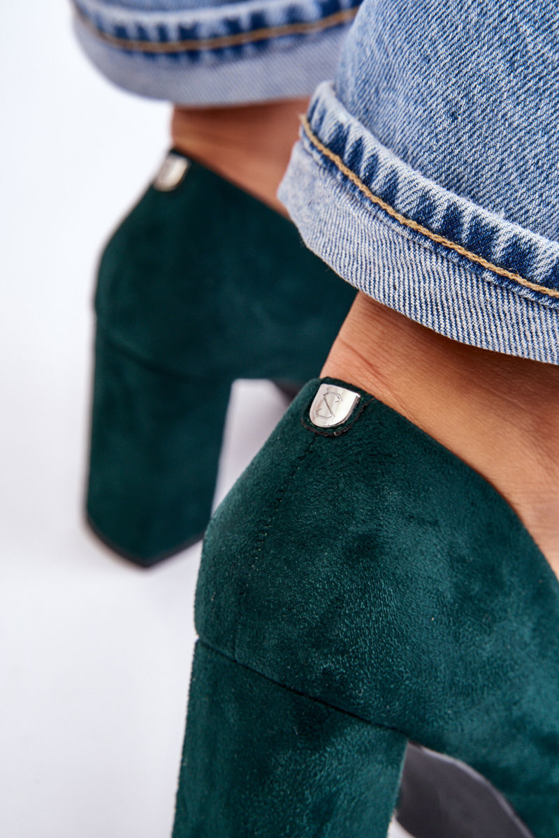Czółenka Zamsz Słupek Zielone Sergio Leone PB216
